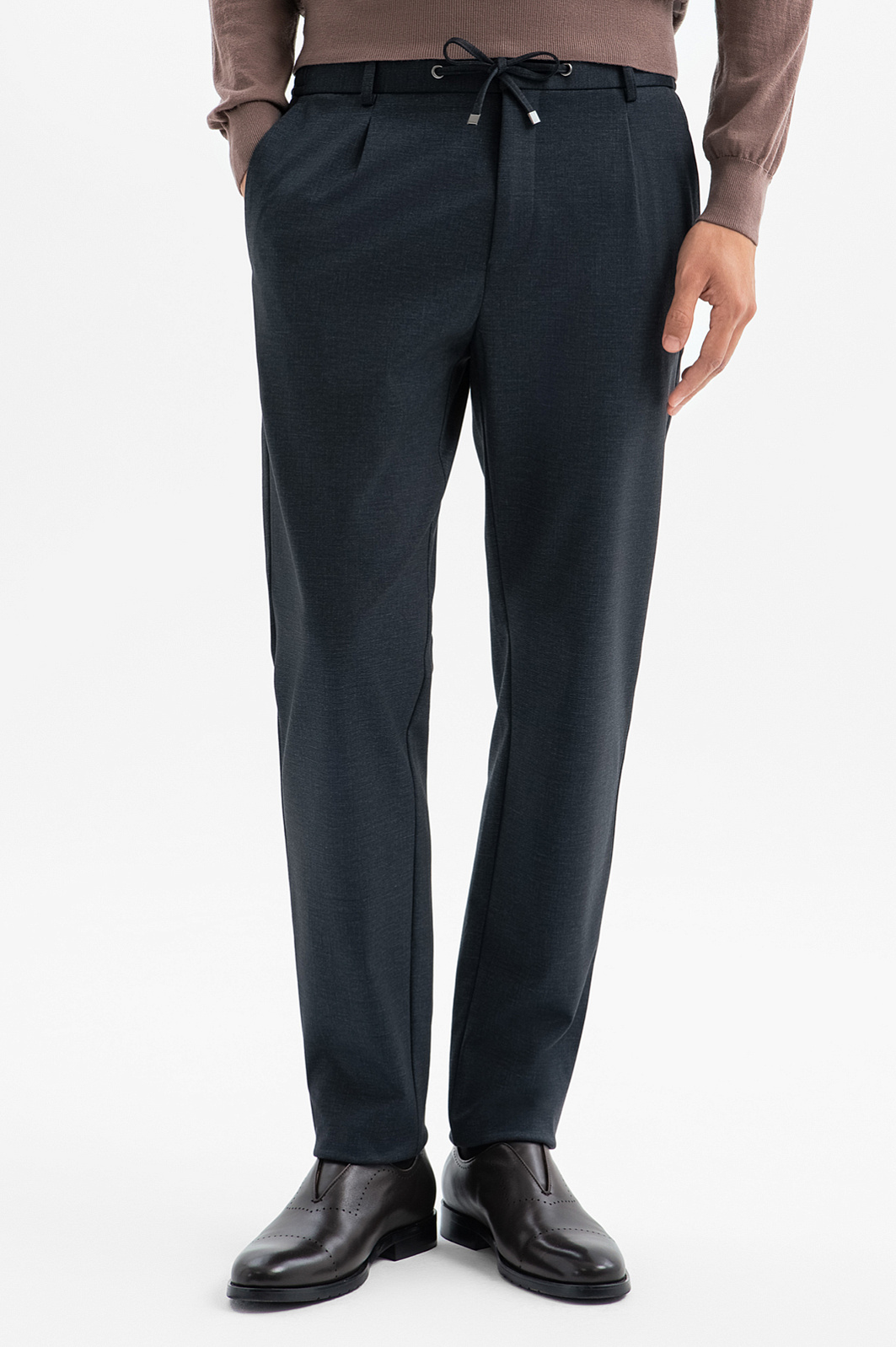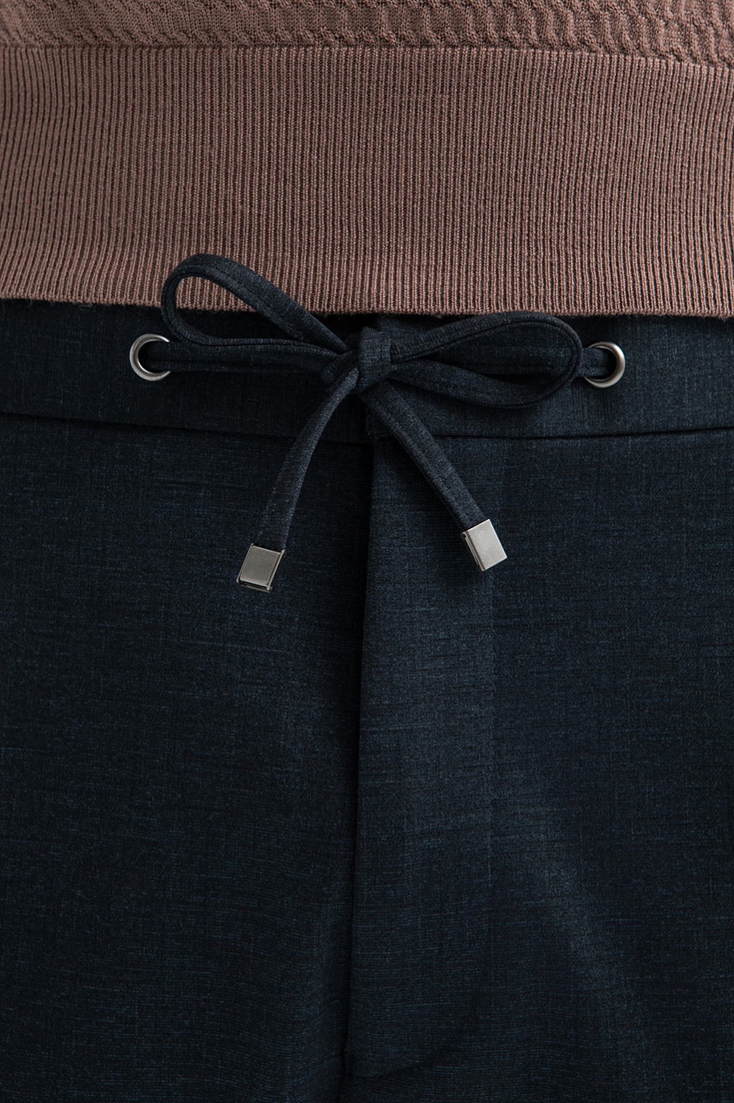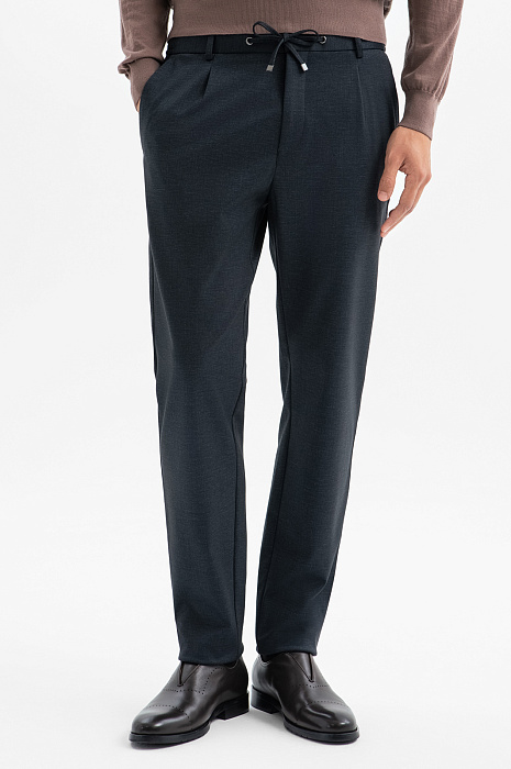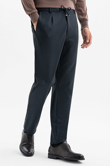 Брюки из трикотажной ткани на кулиске, цвет синий, цена 8 990 руб., код 268344 - купить в Екатеринбурге в интернет-магазине KANZLER