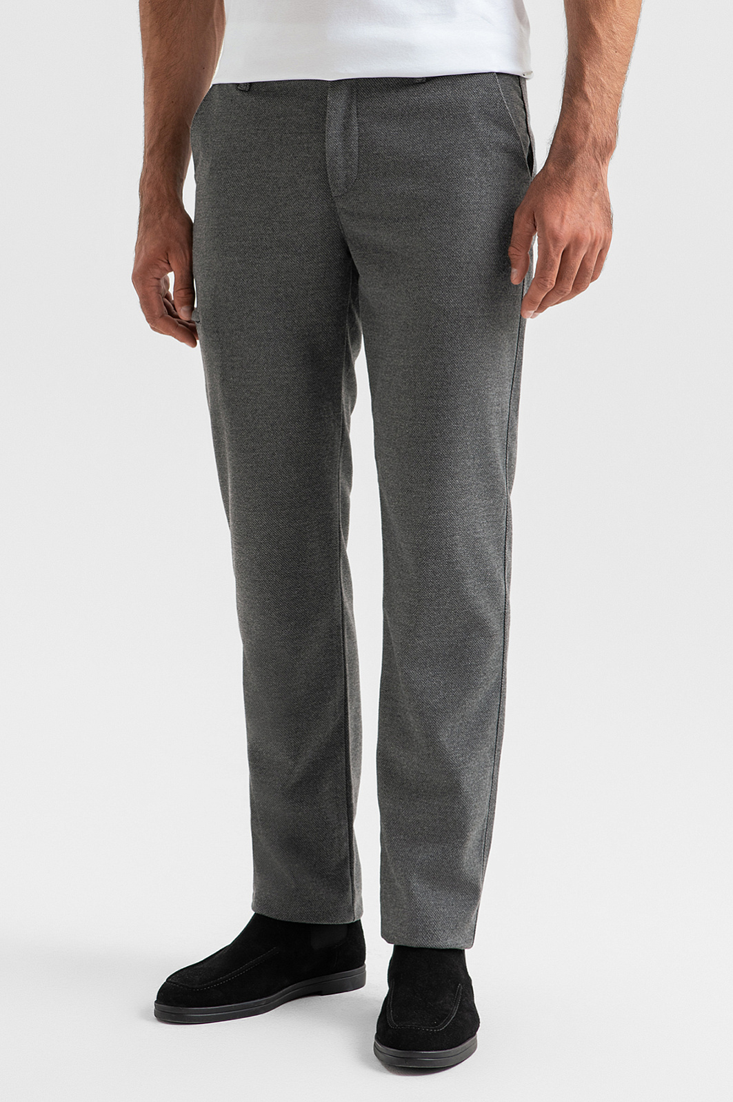 Серые брюки KANZLER из фактурной смесовой хлопковой ткани с дополнительным врезным карманом сбоку — воплощение современного городского стиля. Универсальная и удобная вещь для тех, кто живет в ритме мегаполиса. Достаточно свободный крой позволяет много и активно двигаться. Натуральный воздухопроницаемый хлопок (65%) в составе ткани обеспечивает вентиляцию и поддерживает оптимальную для тела температуру. Вискоза и эластан придают ткани прочность, износоустойчивость и поддерживают аккуратный вид — без складок. Параметры модели: рост 192, 108-83-102 Размер на модели: 50