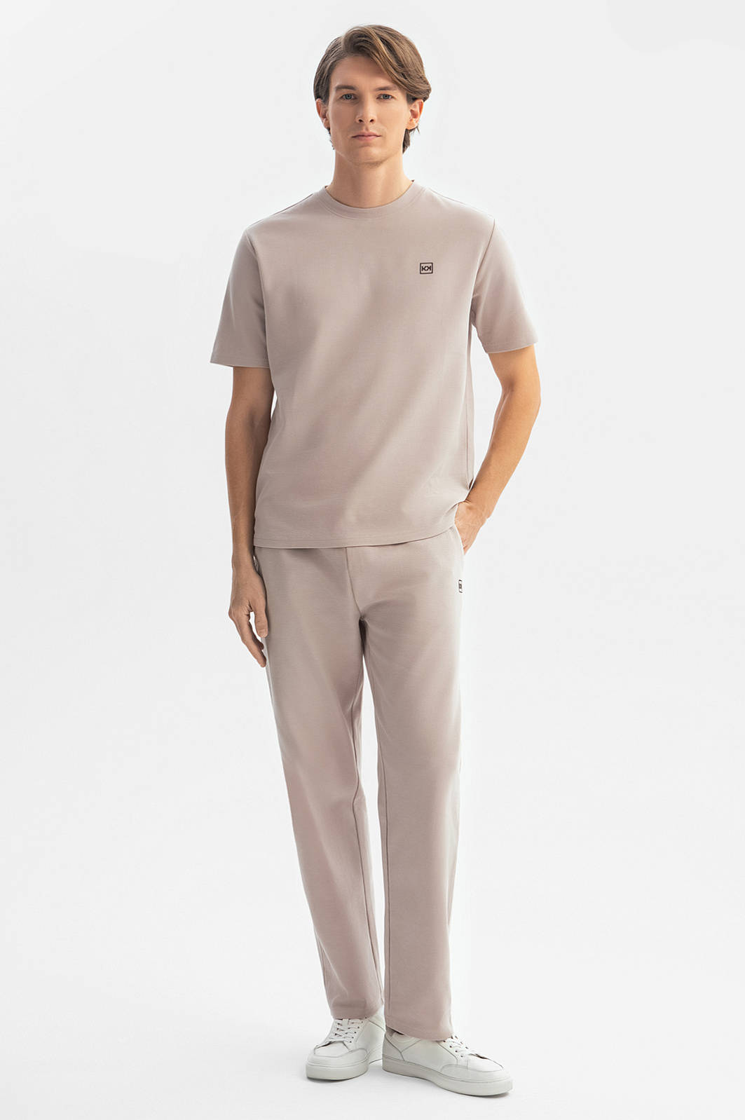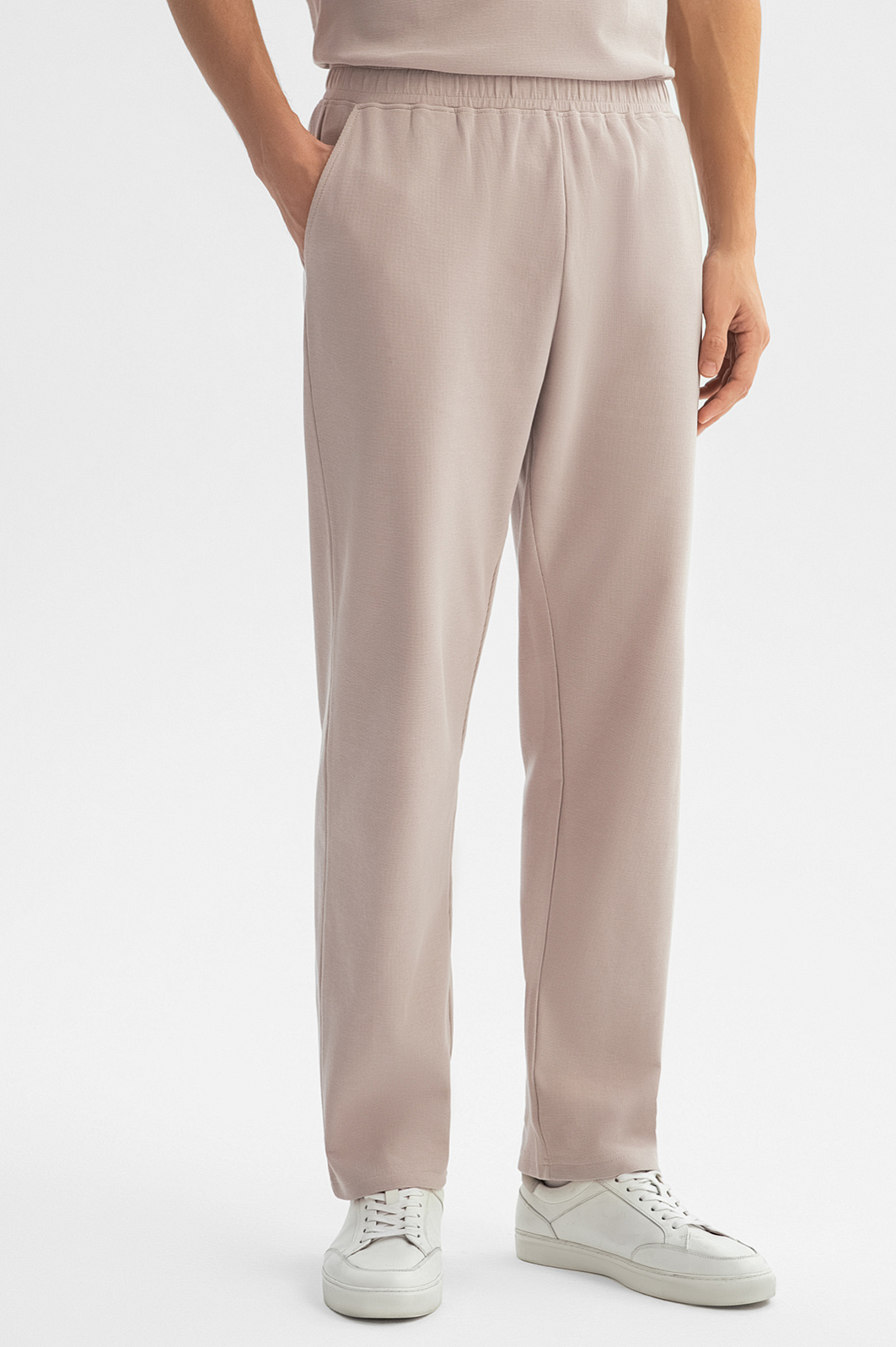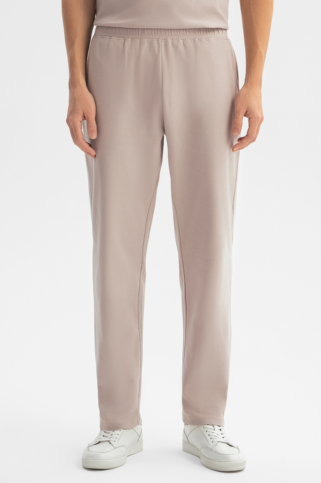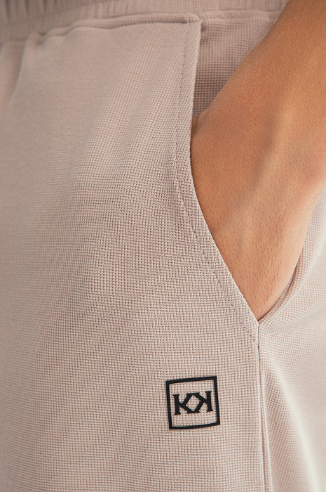 Светло-бежевые брюки KANZLER из хлопка — универсальная модель, которая стирает границы между одеждой для физической активности и расслабленного домашнего отдыха. Современный минималистичный стиль подчеркивают небольшой фирменный логотип и функциональный лаконичный крой. Мягкий воздухопроницаемый гипоаллергенный хлопок (95%) обеспечивает телу комфорт. Небольшое добавление спандекса укрепляет материал и помогает сохранять форму. Для создания костюма модель можно дополнить светло-бежевой толстовкой KANZLER на молнии с капюшоном. Параметры модели: рост 191, 97-77-99 Размер на модели: M