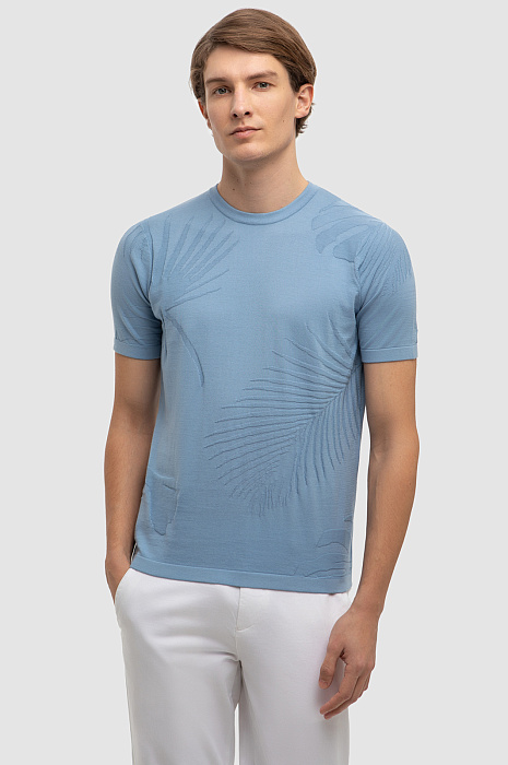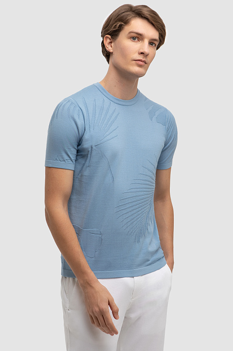 Джемпер с коротким рукавом из хлопка Пима, цвет голубой, цена 4 990 руб., код 267267 - купить в Екатеринбурге в интернет-магазине KANZLER