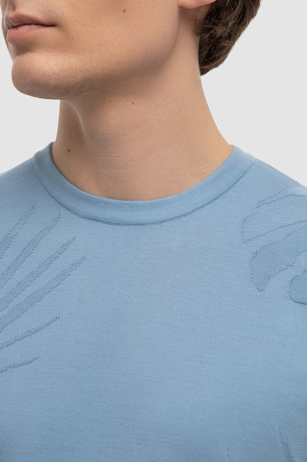 Роскошный голубой матовый оттенок джемпера KANZLER и фактурный ботанический узор из пальмовых листьев навевают мысли о безмятежном отдыхе, создавая расслабленное настроение. 100% премиальный хлопок Пима мягко облегает тело, даря комфорт и ощущение свежести на весь день. Натуральный материал высочайшего качества сохраняет первоначальную форму и цвет даже спустя долгие месяцы - прекрасный выбор для тех, кто ценит в одежде не только стиль, но и функциональность. Модель подойдет как для активных выходных, так и для спокойных дней в офисе с нестрогим дресс-кодом. Наши стилисты предлагают дополнить джемпер светлыми брюками и кожаными лоферами или топсайдерами. Параметры модели: рост 191, 97-77-99 Размер на модели: M
