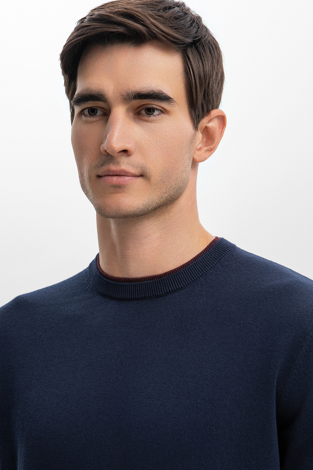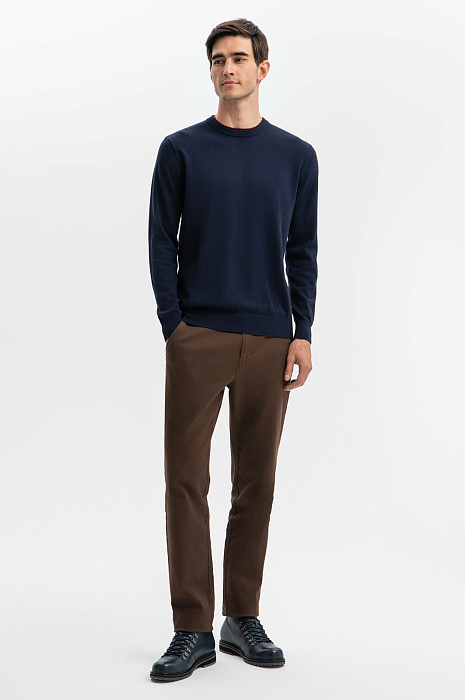 Стильный мужской гардероб требует надежных базовых элементов, и джемпер KANZLER в синем оттенке — это именно то, что нужно. Он идеально подходит для создания как повседневных, так и для более изысканных образов. Модель с круглым воротом защищает от холода, не создавая дискомфорта, что делает ее незаменимой в холодное время года. Однотонный джемпер из натуральной шерсти станет превосходной основой для многослойных комплектов. Его полуприталенный крой подчеркивает фигуру, а великолепный состав — 95% хлопка и 5% кашемира — обеспечивает невероятную мягкость и тепло. Материал также обладает высокой воздухопроницаемостью, и позволяет коже дышать, сохраняя при этом комфортный микроклимат. Благородный синий оттенок — универсальный классический цвет, который легко комбинируется с другими цветами и текстурами. Наши стилисты советуют сочетать изделие с пиджаком и классическими брюками для делового образа, с джинсами и кедами - для повседневного стиля. Параметры модели: рост 192, 101-76-97 Размер на модели: M
