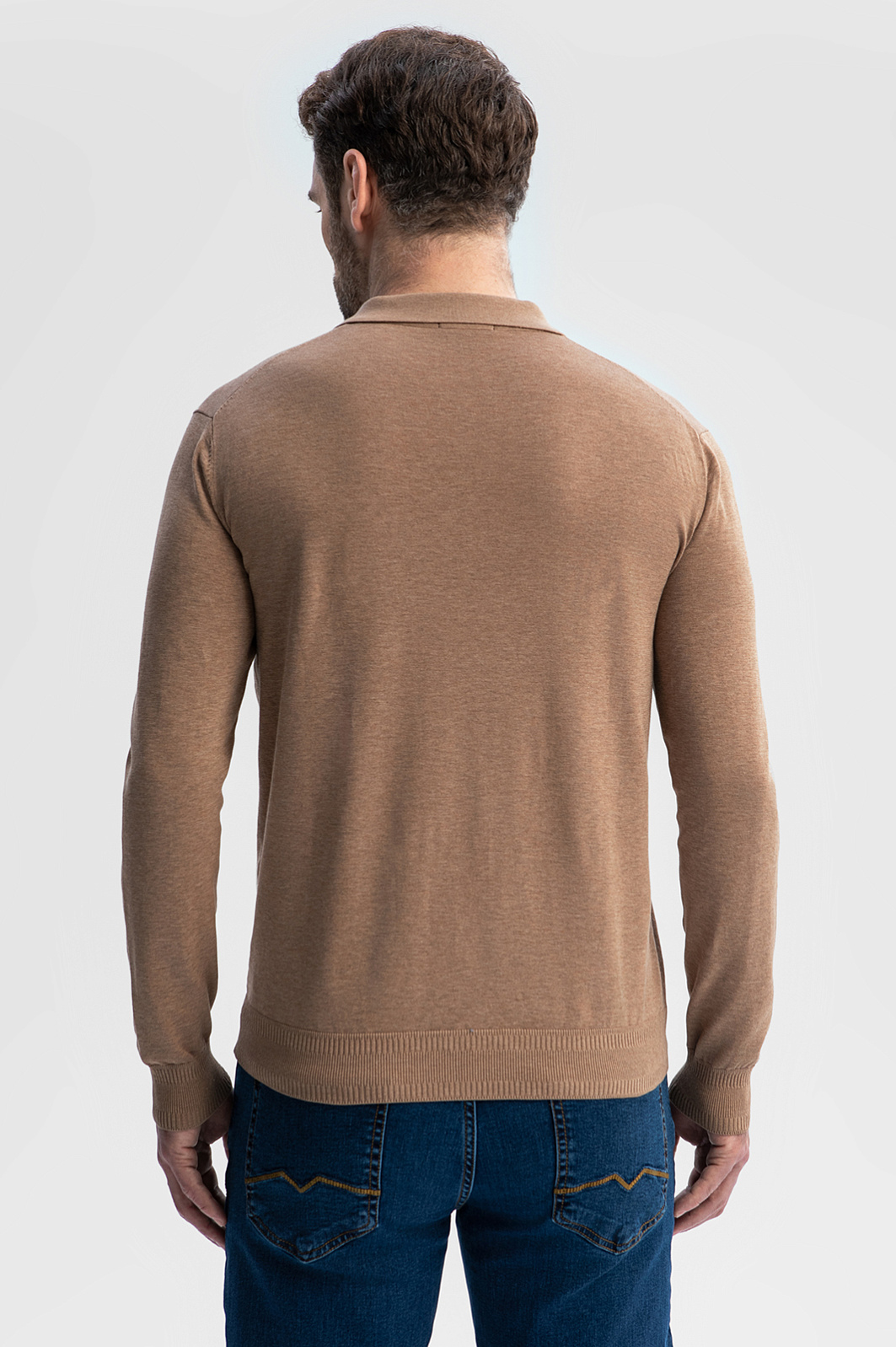Поло с длинным рукавом из хлопка, шелка и льна создано для тех, кто ценит комфорт и эстетику натуральных материалов. Шелковые волокна в составе придают ткани легкое сияние и нежную фактуру, хлопок обеспечивает воздухопроницаемость, а лен обладает терморегулирующими свойствами – материал охлаждает кожу в жаркий день и сохраняет комфортную температуру в прохладную погоду. Теплый бежевый оттенок универсален и легко встроится в любой гардероб, а минималистичный дизайн с застежкой-молнией на вороте создает утонченный образ. Принадлежность бренду обозначена небольшой вышивкой с логотипом на груди. Параметры модели: рост 189, 102-80-99 Размер на модели: M