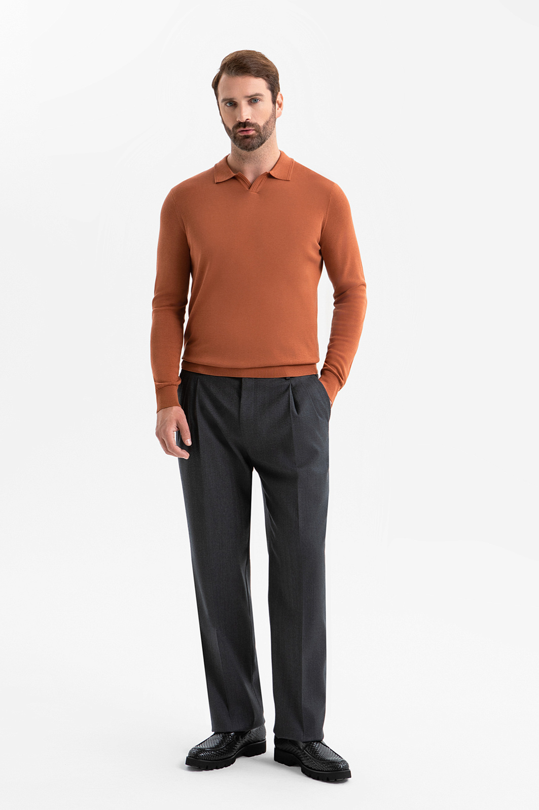 Джемпер поло из шелка, лимитированная коллекция, цвет коричневый, цена 7 990 руб., код 270226 - купить в Екатеринбурге в интернет-магазине KANZLER