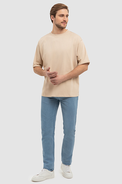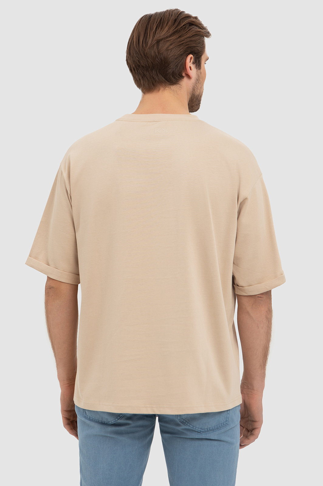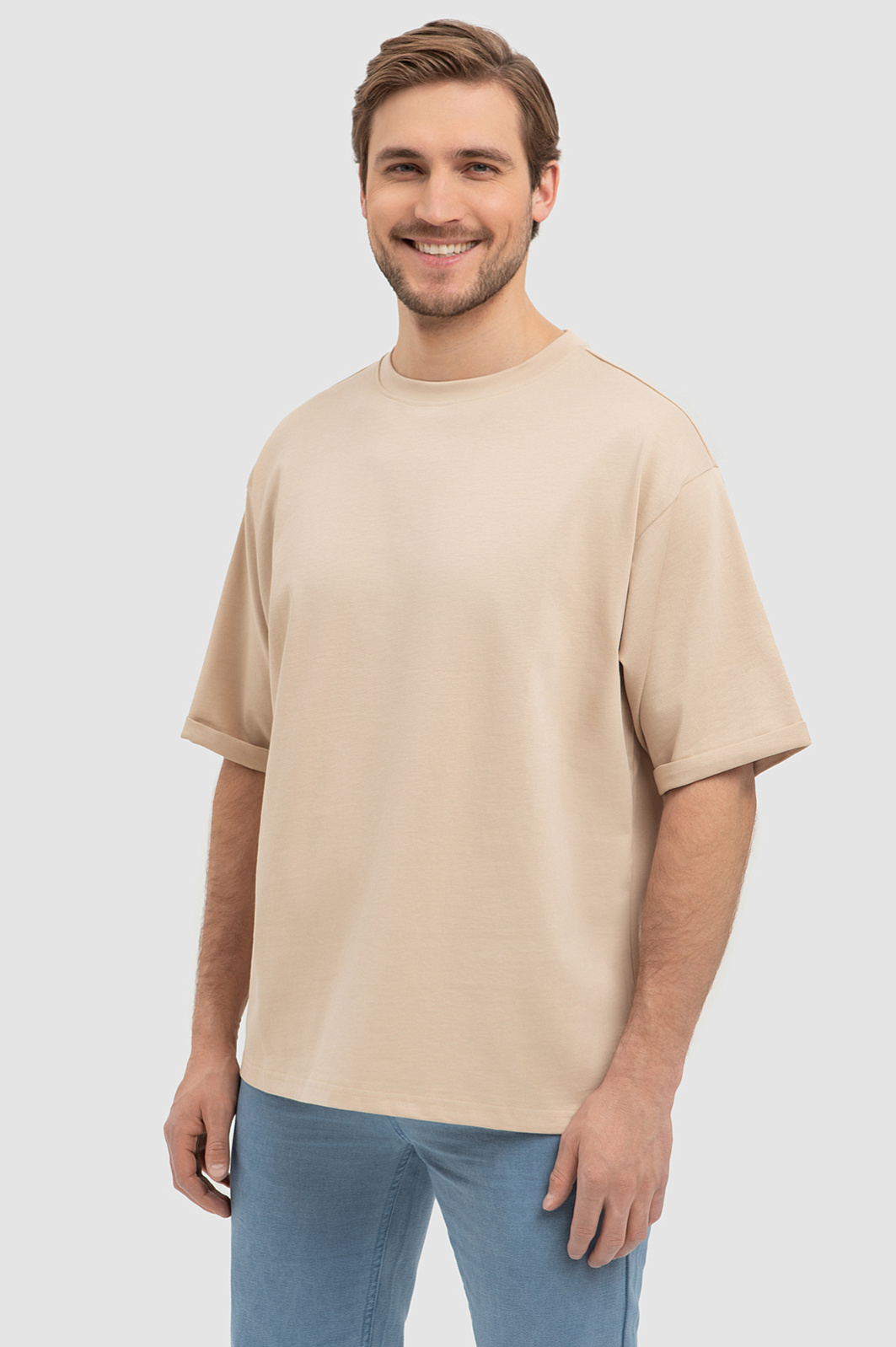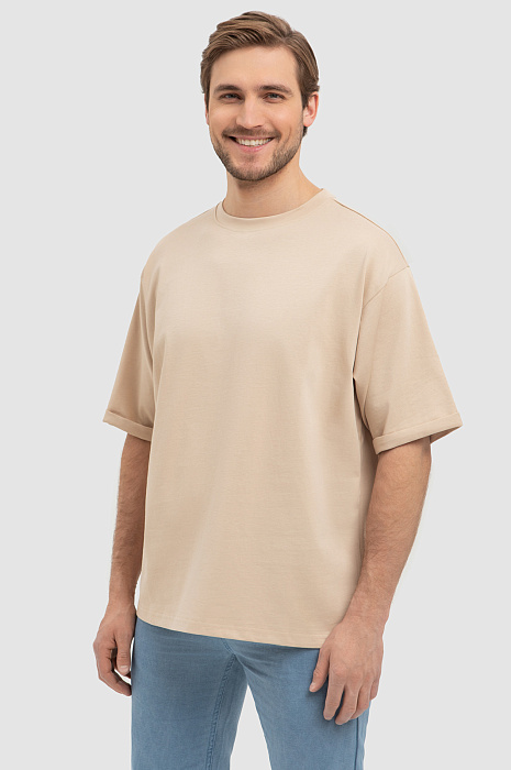 Хлопковая футболка оверсайз, цвет бежевый, цена 3 990 руб., код 267392 - купить в Екатеринбурге в интернет-магазине KANZLER