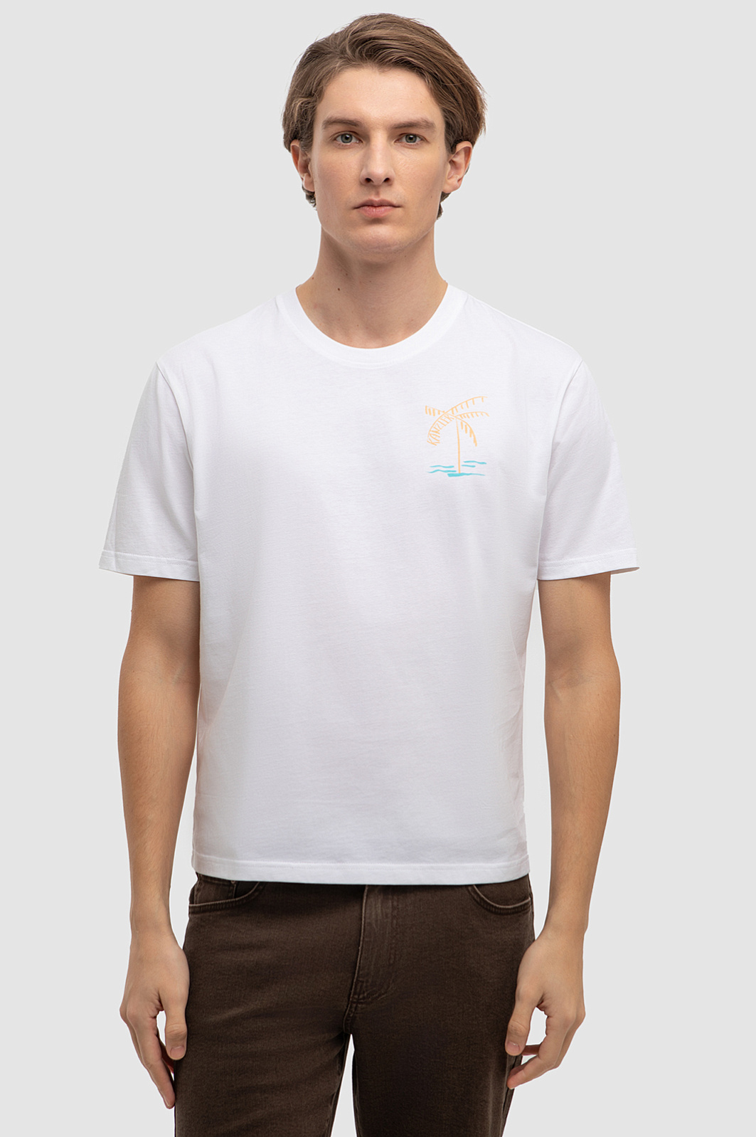 Белая футболка KANZLER с круглым вырезом из чистого хлопка украшена рисунками из жизни отдыхающих, которые напомнят о шуме волн и крике чаек. Море — это состояние души! Акцентную вещь можно дополнить джинсами или бермудами — получится приятный и оптимистичный образ в стиле кежуал. Превосходный трикотаж из дорогого натурального хлопка (100%) — залог спокойного комфортного отдыха. Это гигиеничный и гипоаллергенный материал, который пропускает воздух и впитывает влагу. Параметры модели: рост 191, 97-77-99 Размер на модели: M