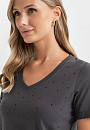 Серая футболка KANZLER из чистого хлопка, в которой органично сочетаются шик и повседневный комфорт, — блестящий пример стиля кежуал гламур, рожденного в результате движения гламура и спорта навстречу друг другу. Нарядность модели придают темные мерцающие стразы. Треугольный вырез удлиняет шею и подчеркивает женственность. Удобной футболку делают умеренно свободный крой и легкий качественный трикотаж из 100-процентного хлопка. Его натуральные гипоаллергенные волокна пропускают воздух, отводят лишнюю влагу и поддерживают комфортную для тела температуру. Параметры модели: рост 180, 87-61-91 Размер на модели: S
