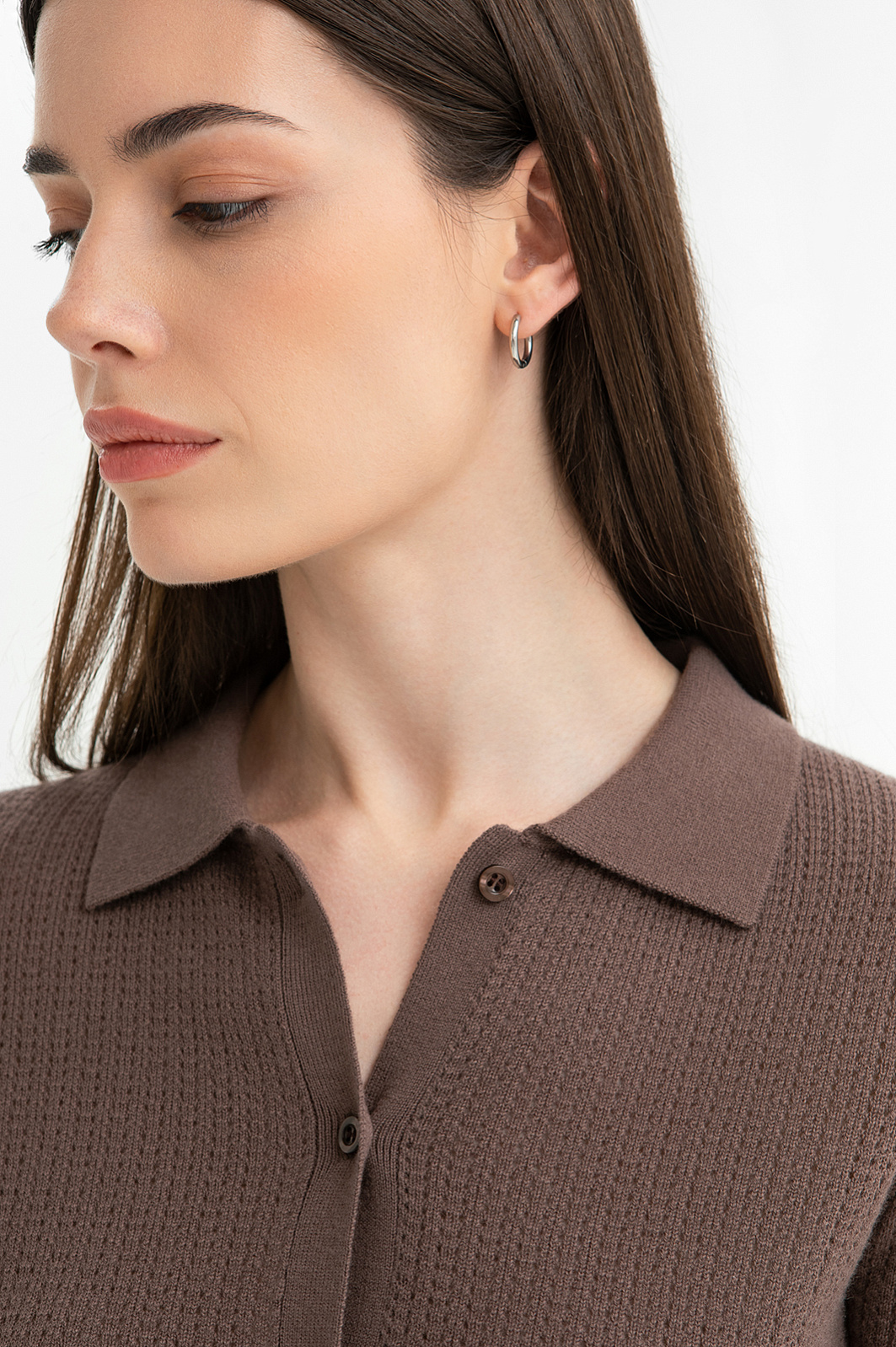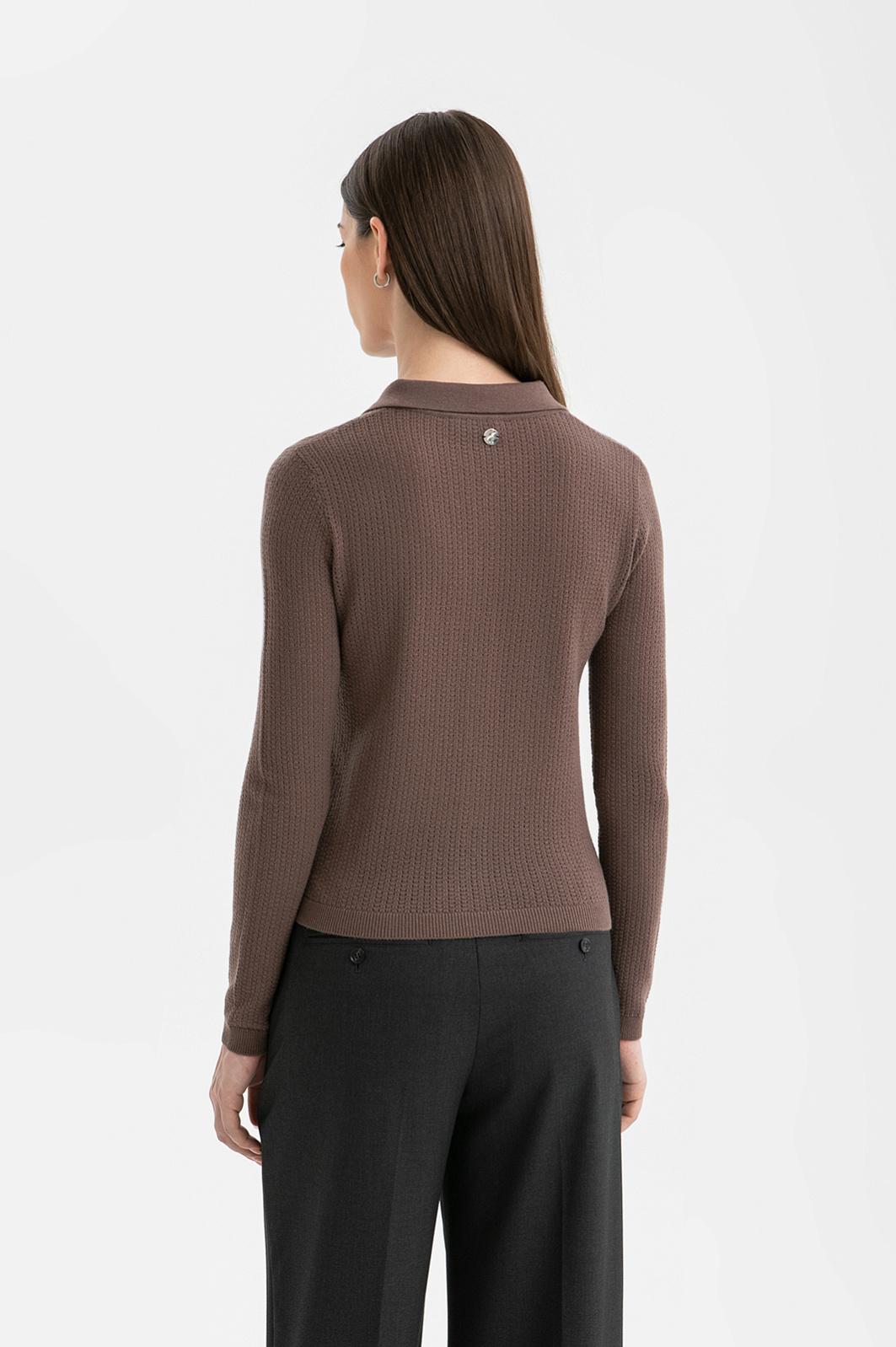 Кардиган KANZLER в оттенке мокко – гимн утонченной роскоши. Укороченная модель с отложным воротником создана из тонкого смесового материала. Шерсть высочайшего качества сохраняет тепло без перегрева, а кашемир добавляет ощущение нежности и мягкости, создавая эффект «второй кожи». Фактурная вязка придает образу глубину, а минималистичный крой делает модель универсальным выбором для делового и повседневного гардероба.