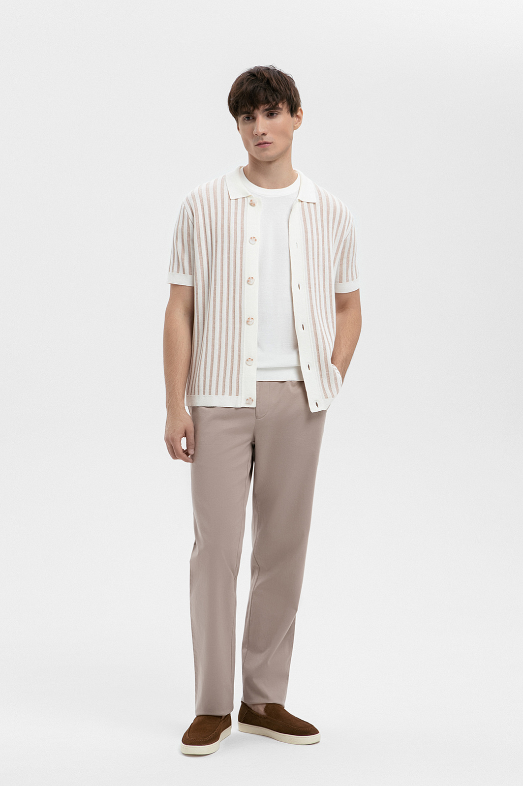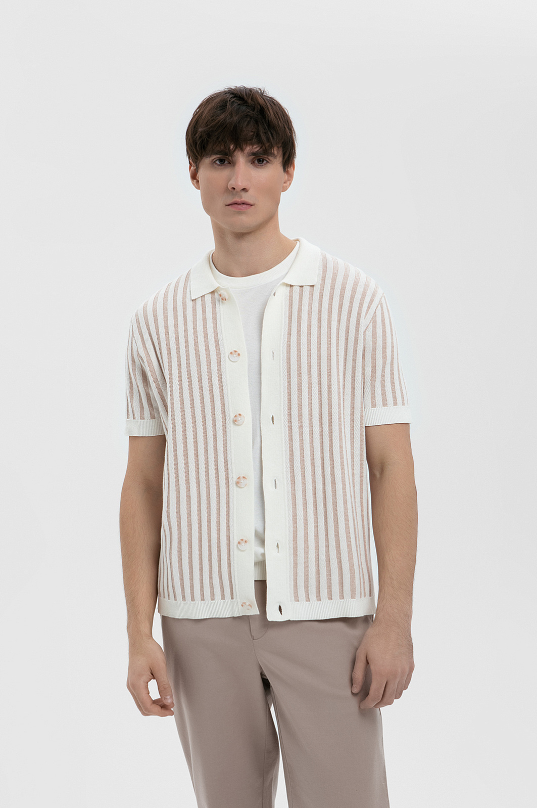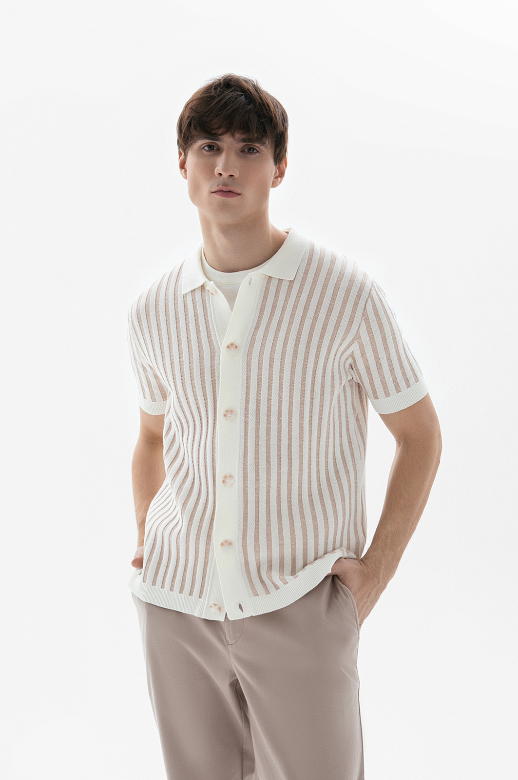 Кардиган с коротким рукавом из хлопка и льна, цвет бежевый, цена 8 990 руб. - купить в интернет-магазине KANZLER