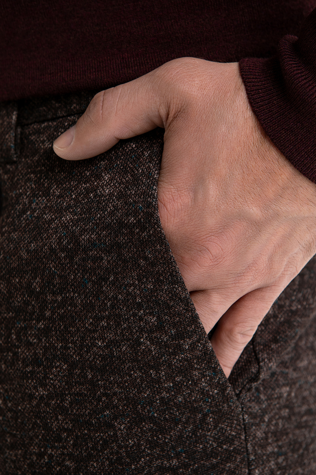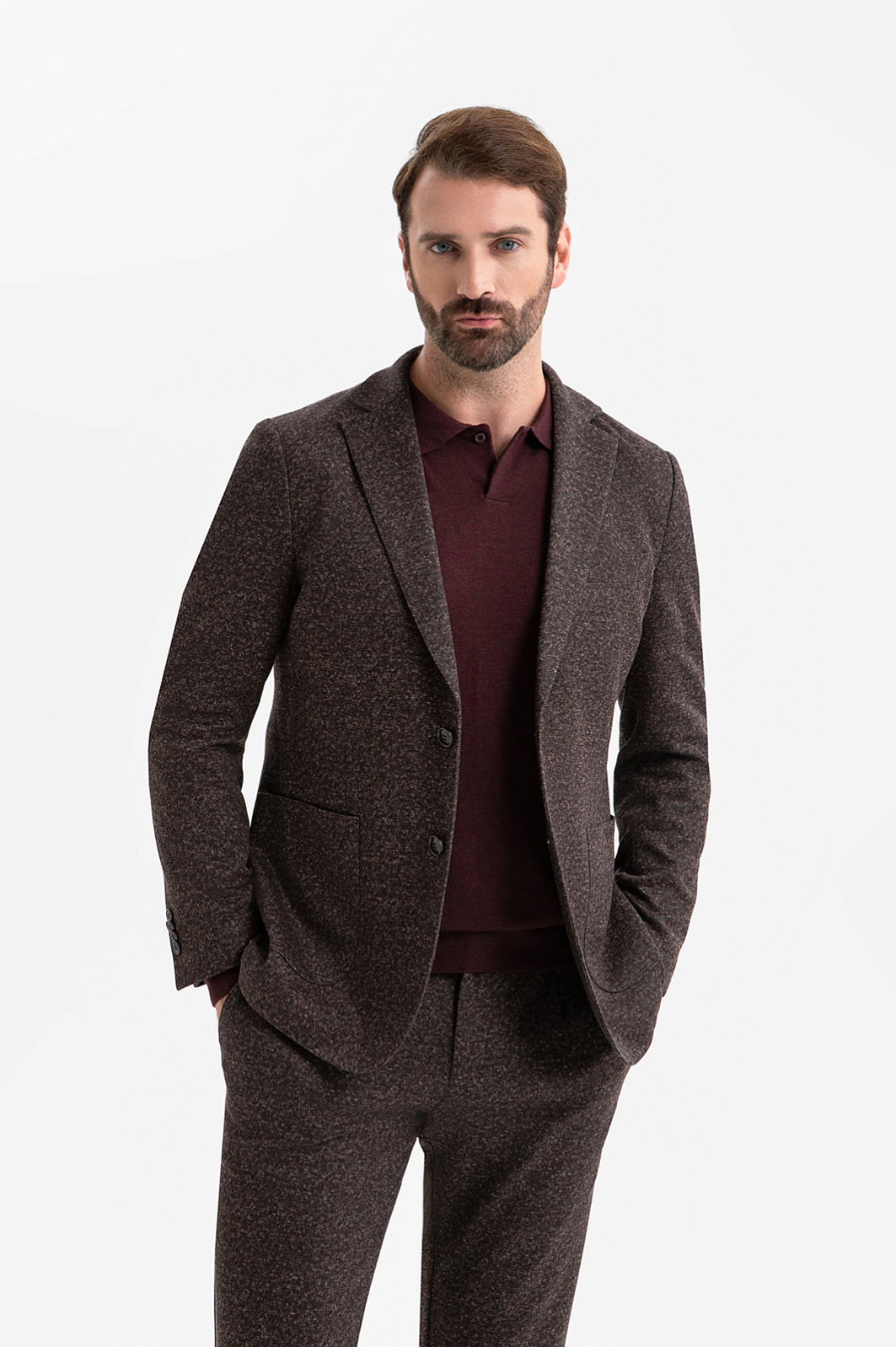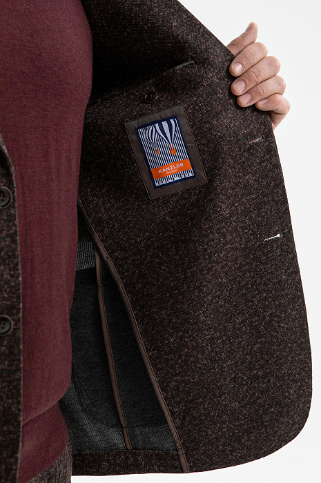 Современный костюм-двойка KANZLER благородного коричневого оттенка с меланжевым эффектом создан для мужчины, который выбирает элегантность без лишней строгости. Он одинаково подойдёт для офиса и неформальной дружеской встречи. Пара составлена из однобортного слегка приталенного пиджака облегчённой конструкции без подкладки и удобных брюк умеренно зауженного кроя на кулиске. Инновационная ткань, созданная из синтетических и натуральных волокон, держит форму и адаптируется к индивидуальным особенностям фигуры. Добавление хлопка позволяет ткани хорошо пропускать воздух и сохранять оптимальную для тела температуру.