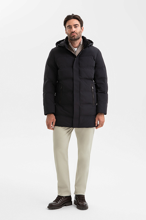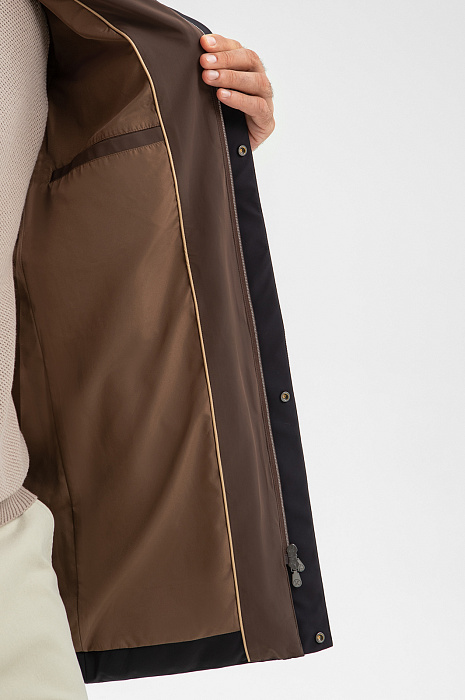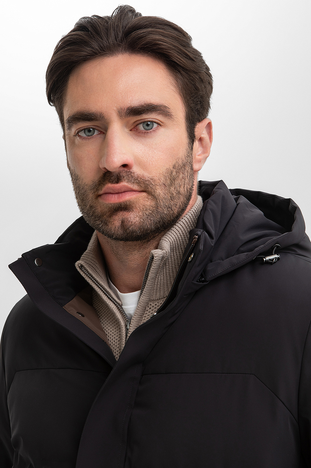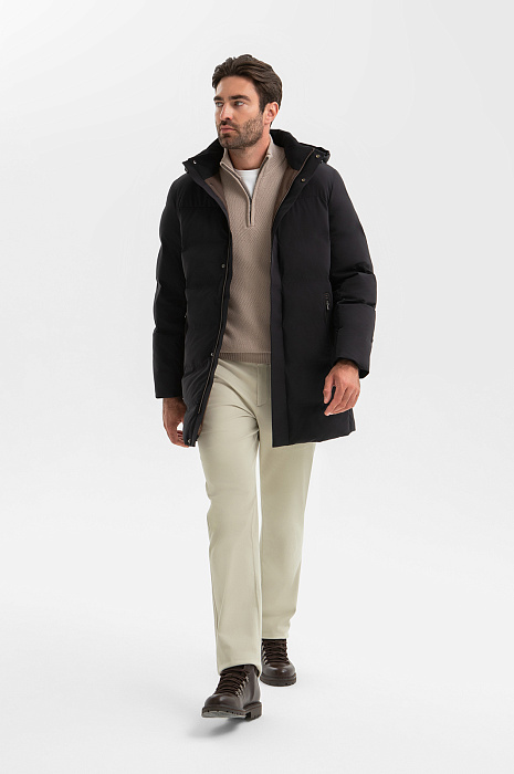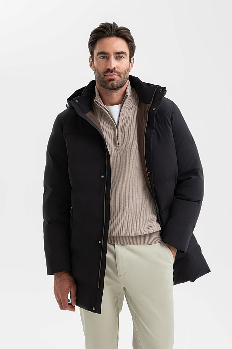 Приобрел куртку по совету менеджера в бутике. Смотрится действительно аккуратно и прекрасно подходит для носки на пиджак. Материал приятен на вид и на ощупь. Стоит отметить, что куртка не зимняя, а скорее полу-сезонная.