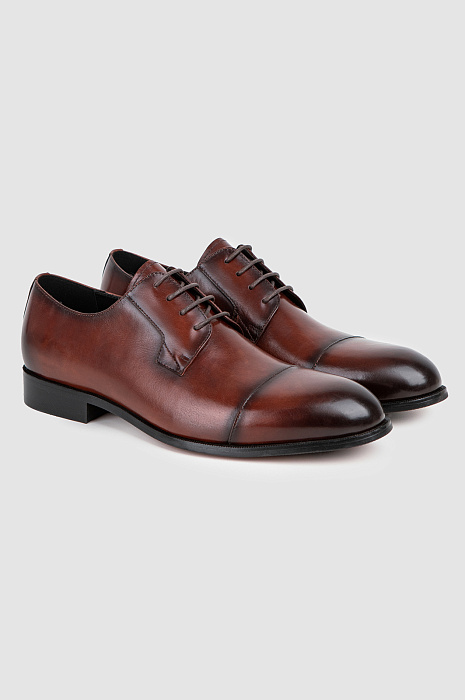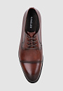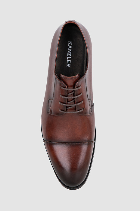 Дерби KANZLER из натуральной кожи коньячного оттенка — воплощение выверенной элегантности без вычурности. Такая обувь идеально дополняет неформальные костюмы и повседневные городские образы. Чёрная патина вдоль швов и на носке и заднике добавляет обуви характер — словно пара уже стала частью личной истории. Контраст матовой поверхности основной части и полированного отрезного мыска придаёт модели шик и отсылает к классическим канонам. Подкладка и стелька, выполненные из гладкой натуральной кожи, обеспечивают комфорт для ног в течение дня. А резиновая подошва — устойчивость при ходьбе.