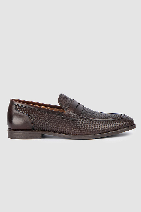 Элегантные темно-коричневые лоферы KANZLER — удобная универсальная обувь, которую можно носить с классическими костюмами и повседневной городской одеждой — джинсами, бомбером, поло или футболкой. Кожаный верх мягко облегает ногу. Матовая фактурная основа сочетается с гладкой кожей, из которой сделаны задник и канонический язычок с прорезью. Внутренняя часть со стелькой тоже сделаны из натуральной кожи. Устойчивая подошва — из резины.