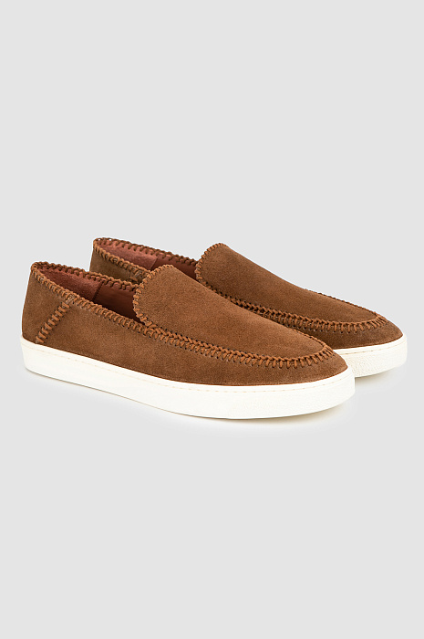 Коричневые лоферы KANZLER из замши с белой подошвой — лёгкая и удобная классическая обувь в современном исполнении. Лаконичная форма сочетается с оригинальной отделкой — декоративным краевым швом, который подчёркивает структуру обуви и привлекает внимание к деталям. Подкладка и стелька, выполненные из гладкой натуральной кожи, служат комфорту и избавляют ноги от усталости при длительной ходьбе. Утолщенная резиновая подошва амортизирует шаг.