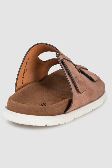 Мужские сандалии в благородном оттенке мокко для стильных летних образов. Бархатистая поверхность натуральной кожи особенно красива в этом трендовом оттенке на контрасте с белой подошвой - актуальное сочетание для городского образа со льняными брюками и рубашкой или отпускного образа с бермудами и футболкой. Широкие перемычки обеспечивают комфортную посадку по ноге, а регулируемые ремешки на липучке позволяют добиться максимально комфортной посадки. Благодаря широкой резиновой подошве ногам будет удобно в течение долгой прогулки, и даже на каменистом пляже. Широкие перемычки дополнили логотипом бренда.
