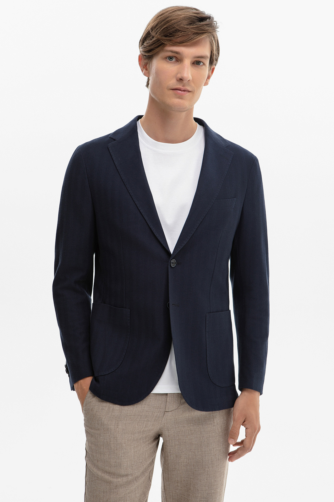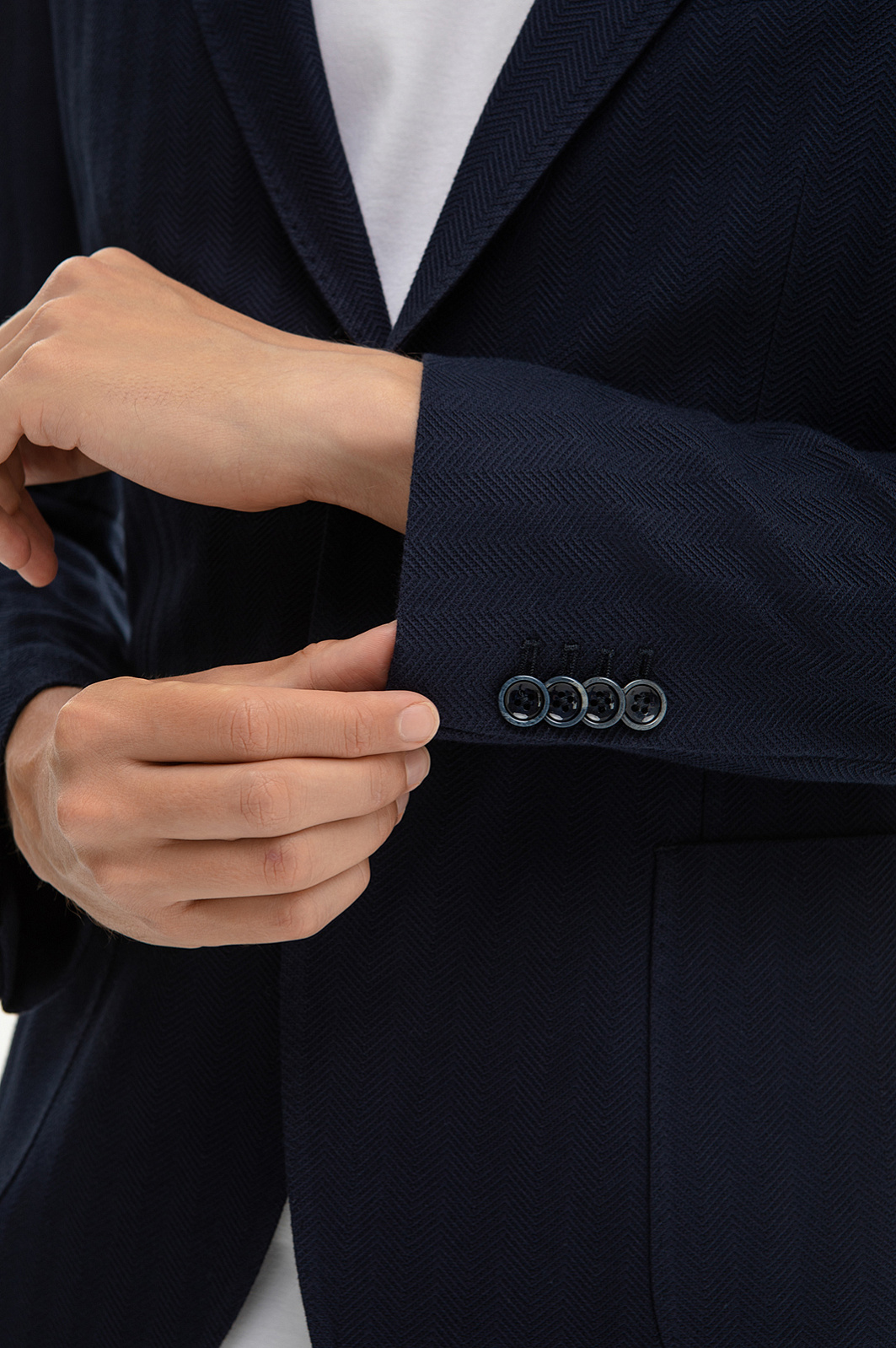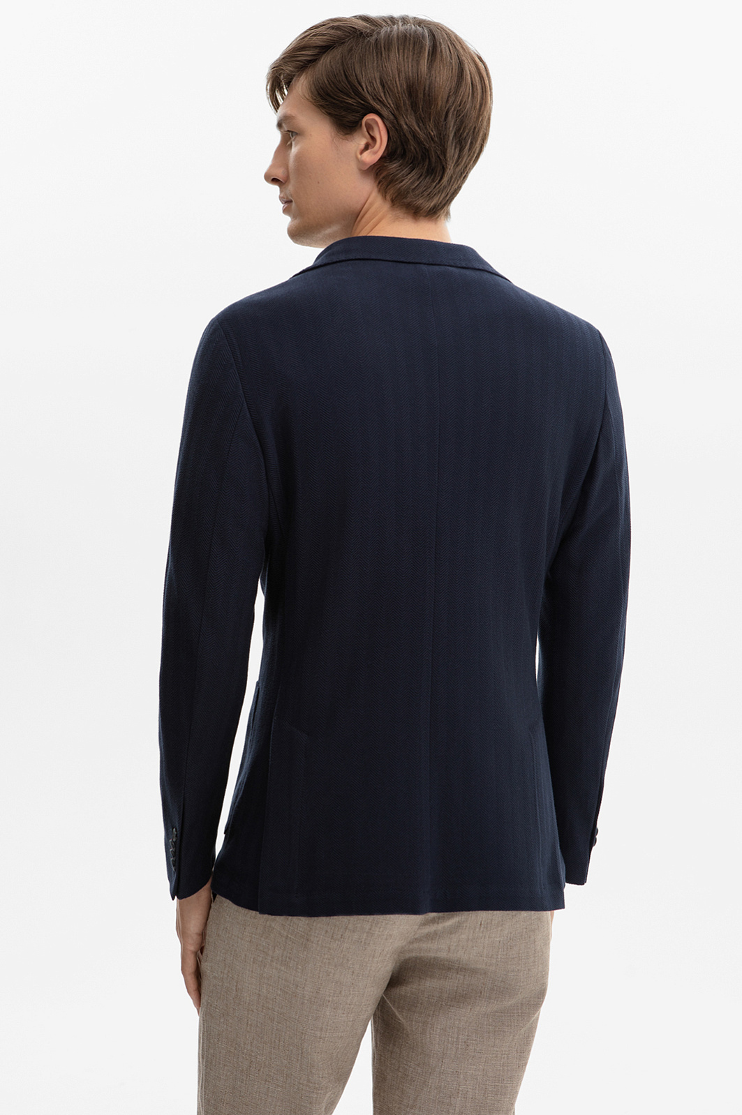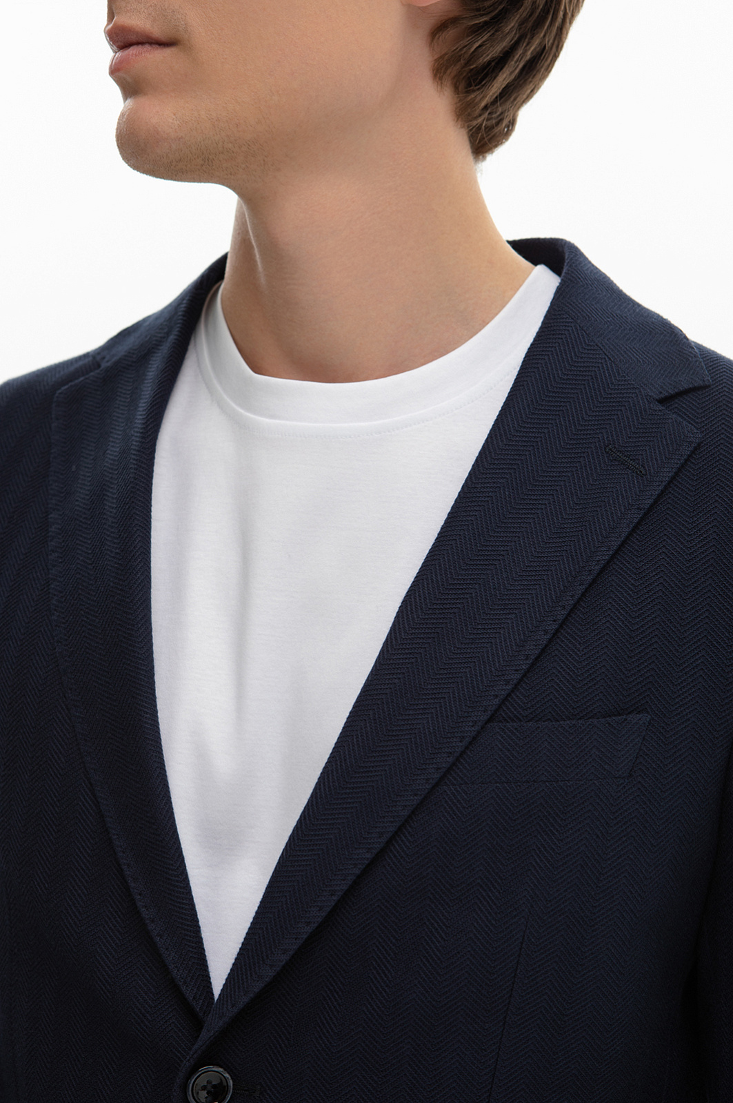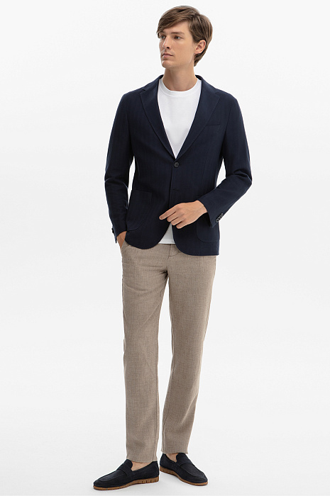 В лимитированную коллекцию KANZLER вошел пиджак в глубоком синем оттенке – воплощение лаконичной элегантности в каждой детали. Особое внимание привлекает изысканный узор «шеврон», создающий динамичную и визуально интересную фактуру. Смесовый материал премиального качества сочетает в себе шелковистость и мягкость вискозы, прочность полиэстера, воздухопроницаемость и гигроскопичность хлопка. Ткань приятна на ощупь, комфортно ощущается на теле и сохраняет форму и первозданный вид во время длительного ношения. Небольшое добавление эластана обеспечивает свободу движения и отличную посадку, адаптируясь к особенностям фигуры. Приталенный крой создает собранный, аккуратный силуэт, а двойная шлица обеспечивает дополнительный комфорт. Элегантный пиджак станет надежным спутником как на деловых встречах, так и на вечерних мероприятиях. Параметры модели: рост 191, 97-77-99 Размер на модели: 50