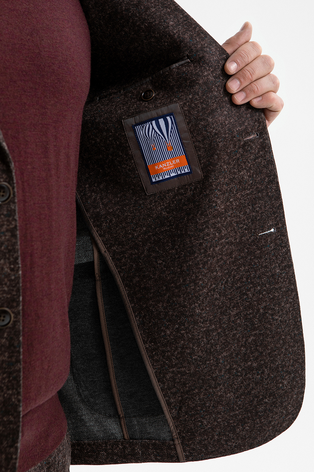 Пиджак однобортный с эффектом меланжа, цвет коричневый, цена 16 990 руб., код 270009 - купить в Екатеринбурге в интернет-магазине KANZLER
