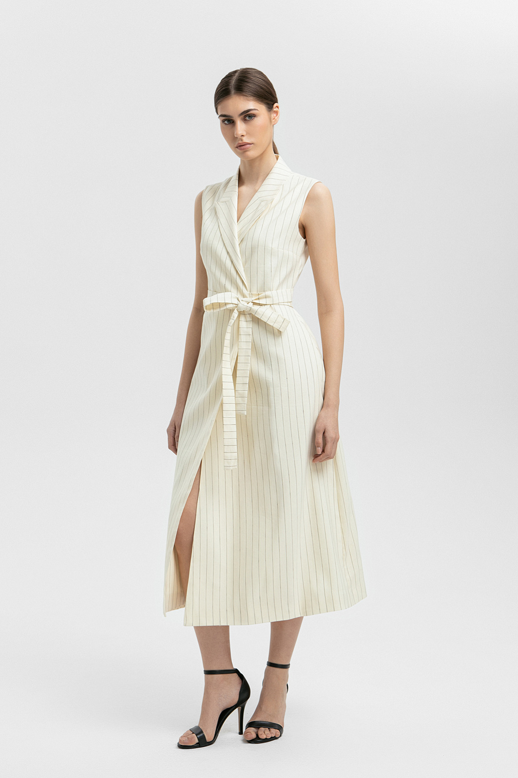 Платье из шерсти, льна и шелка, цвет молочный, цена 24 990 руб. - купить в интернет-магазине KANZLER