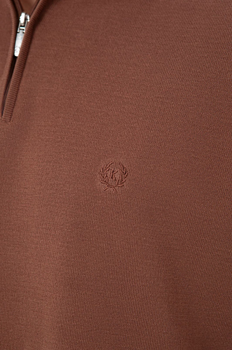 Поло KANZLER из лимитированной коллекции оттенка какао настраивает на приятный отдых в горном шале и загородном клубе. Роскошная вещь из дорогого ценного материала, созданного из хлопка, шелка и льна, адресована тем, кто ценит комфорт, индивидуальность и элегантность. Модель украшена вышитой эмблемой. Нотку спортивного шика привносит застежка-молния с аккуратным язычком из белого металла. Дорогой смесовой материал обладает уникальными достоинствами трех видов натуральных волокон. Хлопок обеспечивает воздухообмен и оптимальную для тела температуру, шелк — легкий блеск и ощущение нежного прикосновения, лен — гигроскопичность и устойчивость к загрязнению. Параметры модели: рост 192, 101-76-97 Размер на модели: M