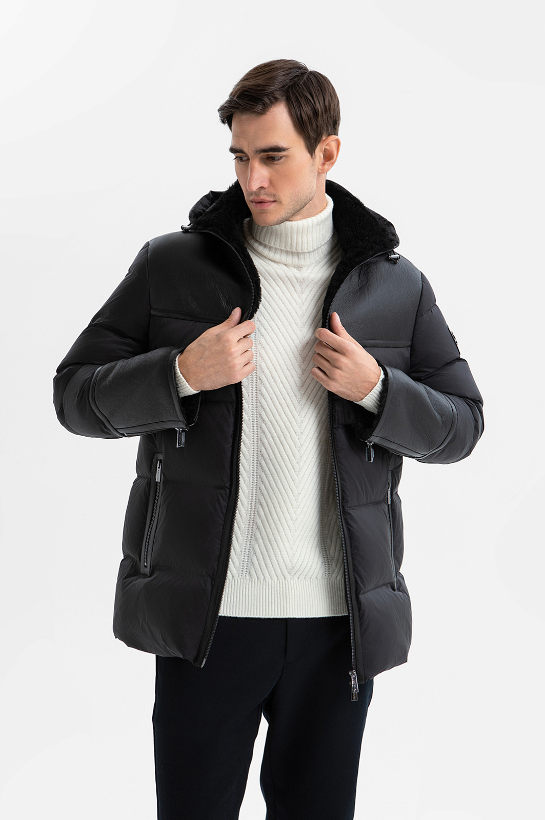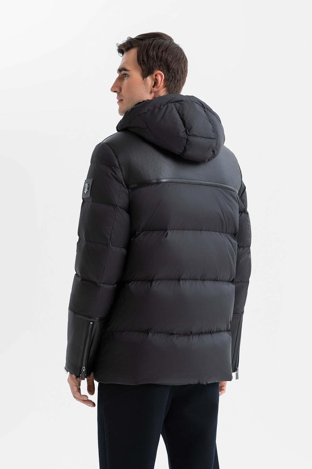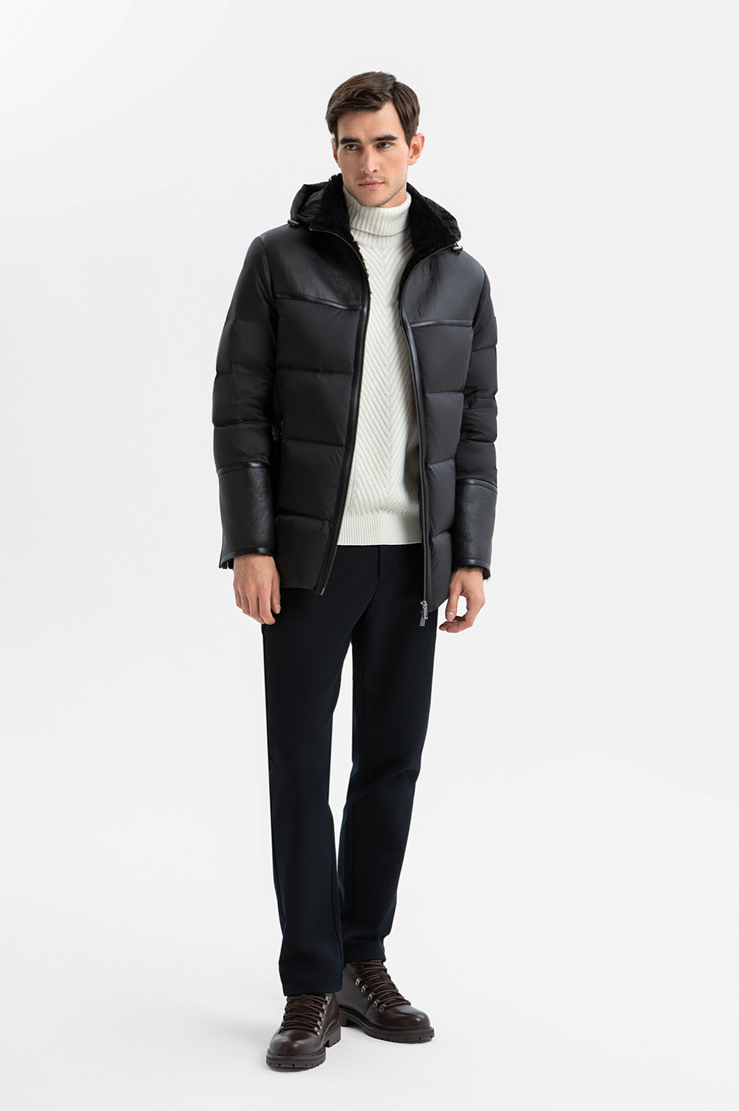 Стёганый чёрный пуховик KANZLER на молнии с капюшоном из лимитированной коллекции, созданной с использованием инновационных технологий, — воплощение современного люкса и продуманной функциональности. Полуприлегающий крой задаёт лаконичные очертания, сохраняя комфорт и свободу движений. Верхняя часть модели выполнена из превосходной овечьей кожи, которая придаёт модели благородный внешний вид и защищает от ветра. Нижняя часть сшита из прочного полиэстера, обеспечивающего лёгкость и практичность. Тёплый меховой воротник создаёт ощущение уюта даже в суровую погоду. Декоративные вставки из гладкой кожи, а также молнии на карманах и рукавах добавляют урбанистического шика. Куртка утеплена овечьим мехом и наполнителем (90% пуха и 10% пера), благодаря чему даже в морозную погоду (до –20 °C) прогулки на свежем воздухе будут комфортными и приятными. Параметры модели: рост 192, 101-76-97 Размер на модели: 50