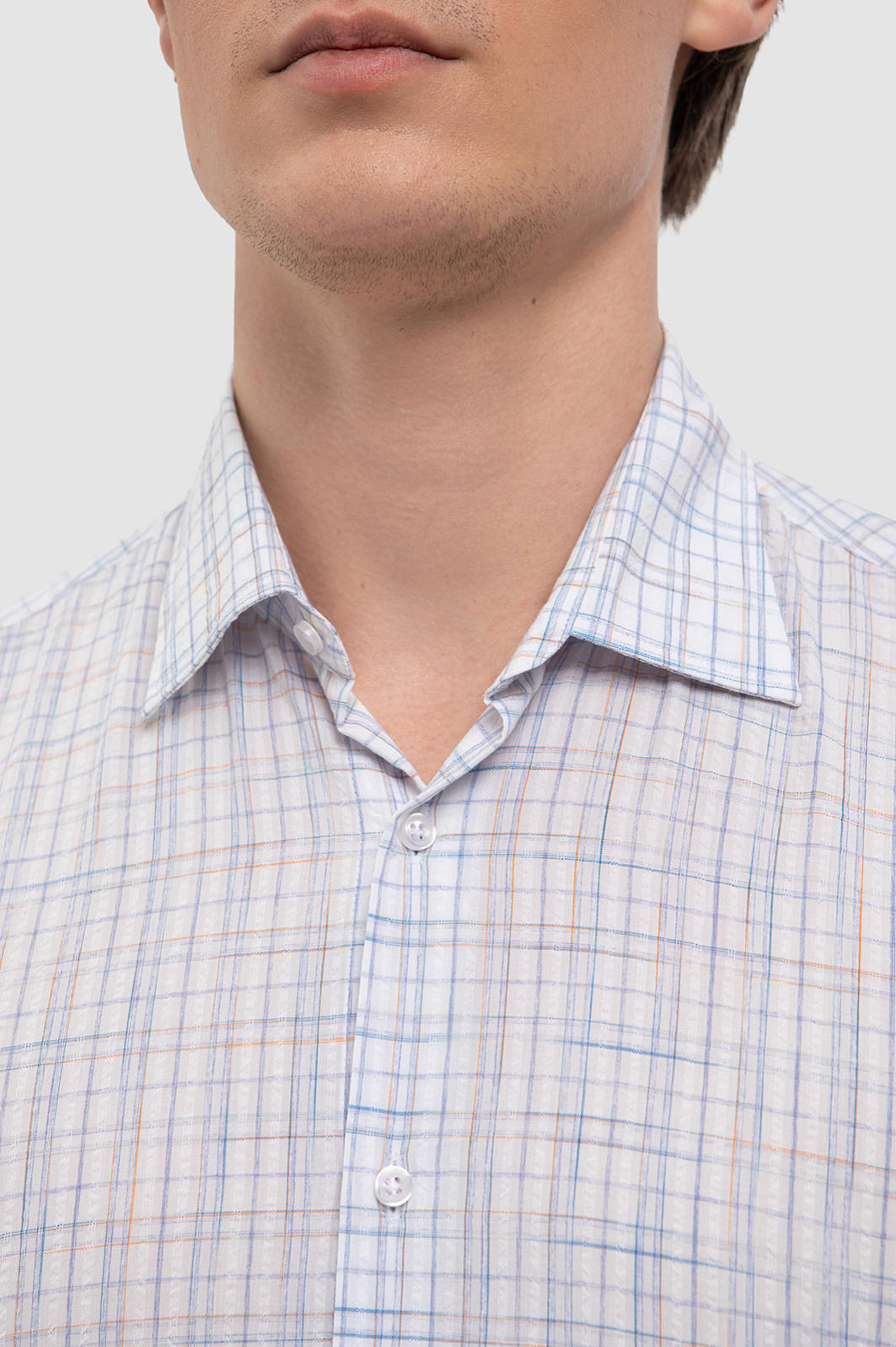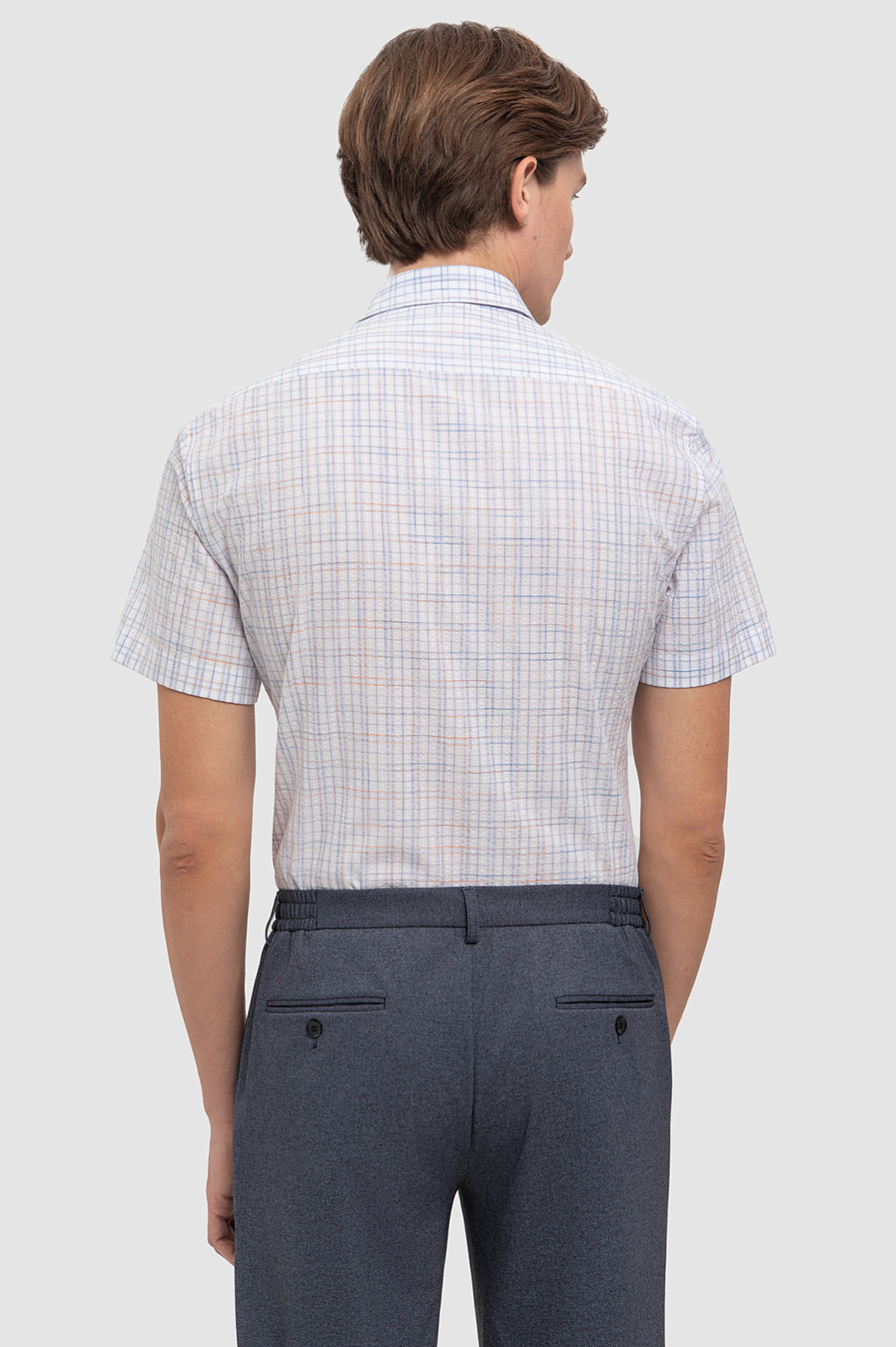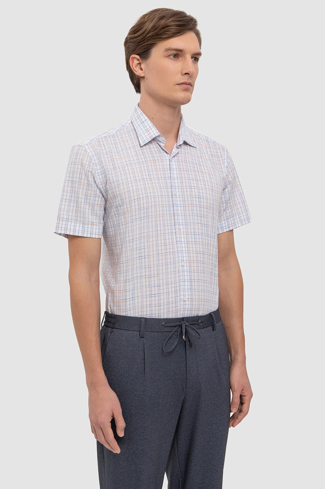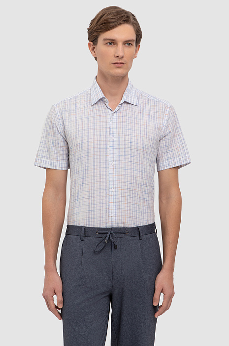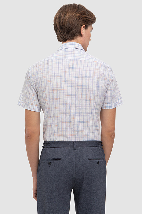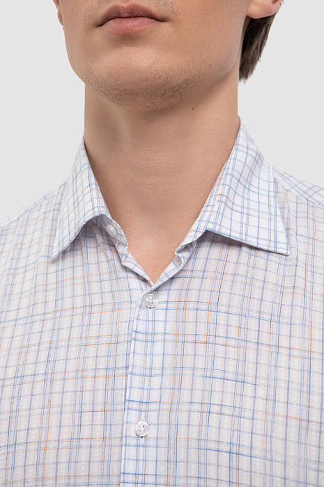 Белая сорочка KANZLER с коротким рукавом в сине-красную клетку разбавит повседневный и деловой гардероб. Легкий и дышащий смесовый материал создан из натуральных волокон хлопка и тенсела. Первый отвечает за воздухопроницаемость, мягкость и гипоаллергенность, а второй обеспечивает прочность, устойчивость к загрязнениям, а также легко впитывает и испаряет влагу. Классический клетчатый принт в нежных голубых тонах придаёт образу свежесть, а Приталенный крой – аккуратную посадку по фигуре. Параметры модели: рост 191, 97-77-99 Размер на модели: 40
