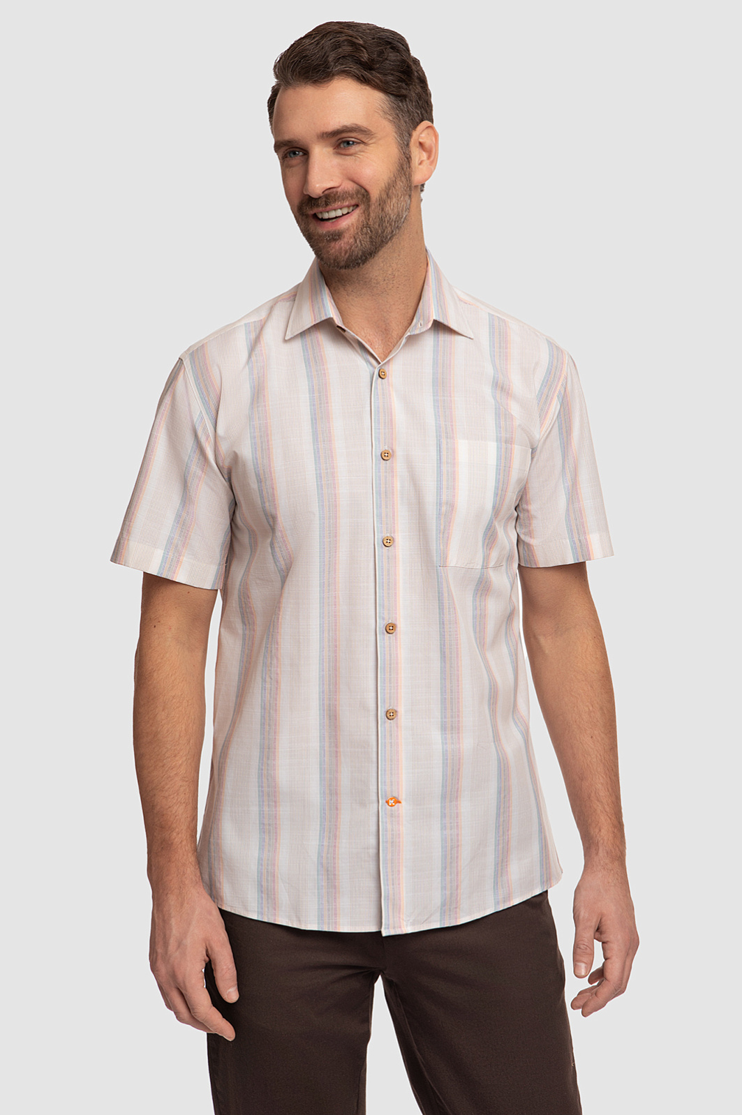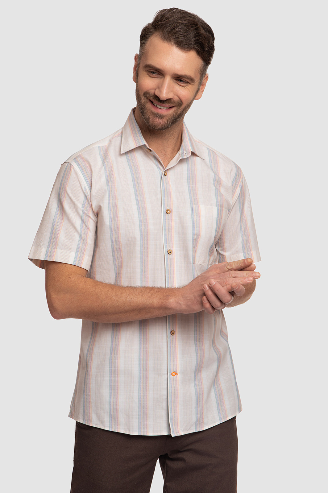 Бежевая сорочка с коротким рукавом из хлопка в Екатеринбурге
