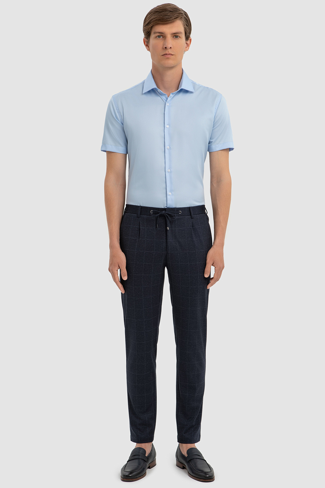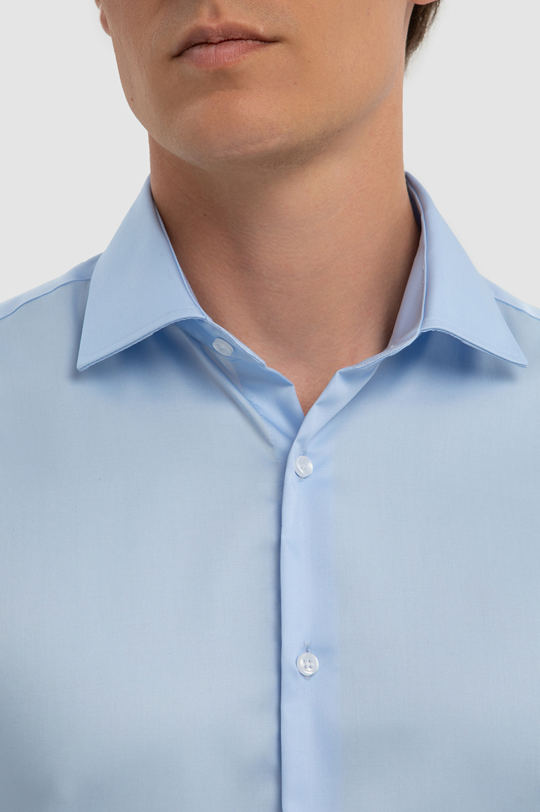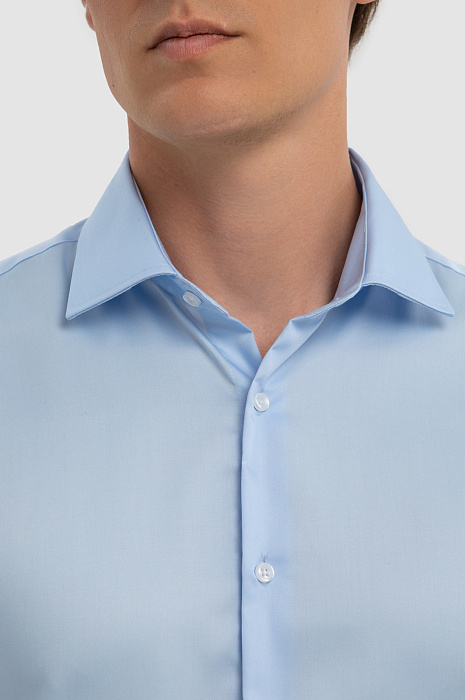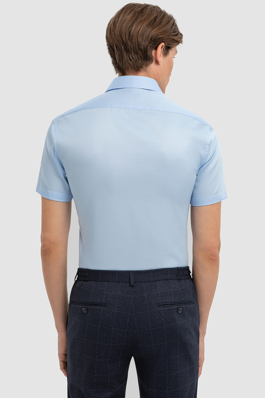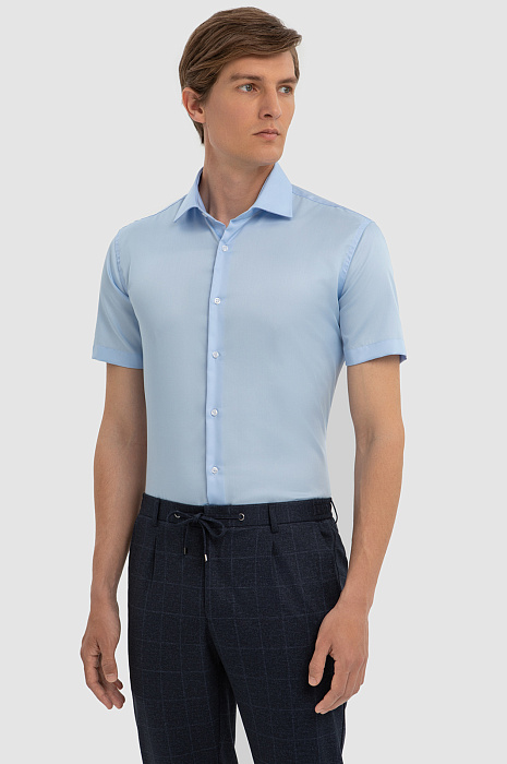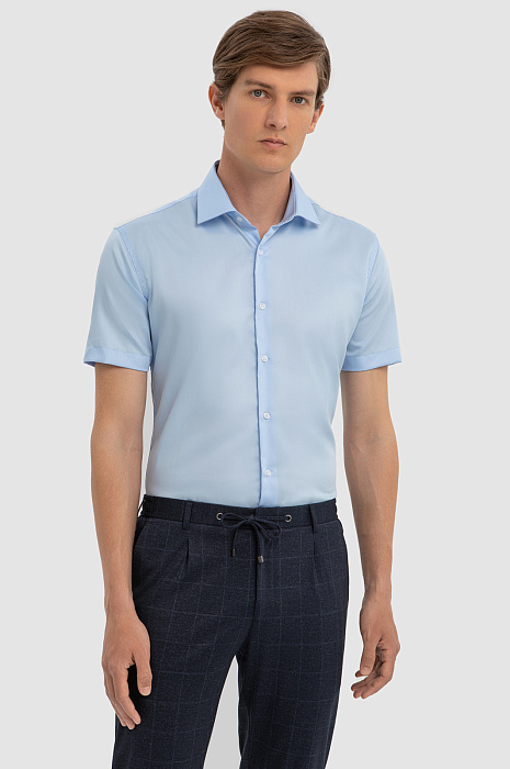 Хлопковая голубая сорочка с коротким рукавом, легкая в уходе, цвет голубой, цена 6 990 руб., код 267498 - купить в Екатеринбурге в интернет-магазине KANZLER