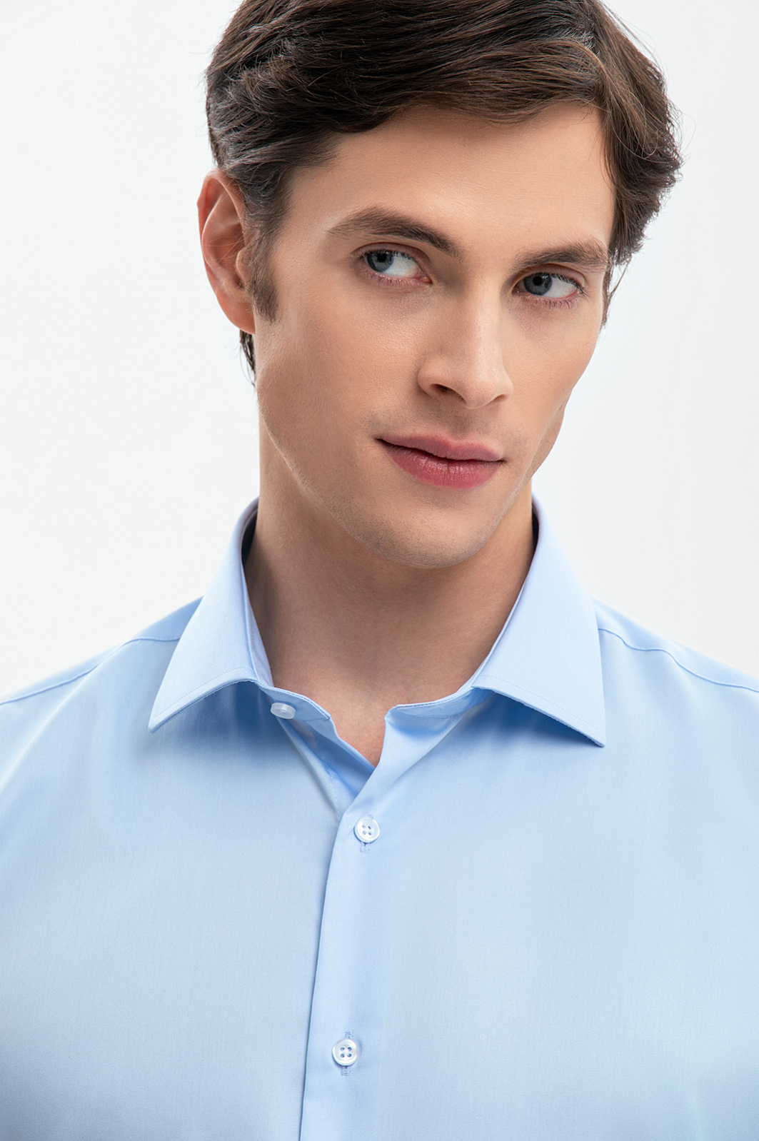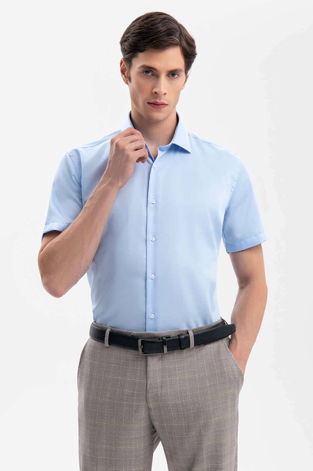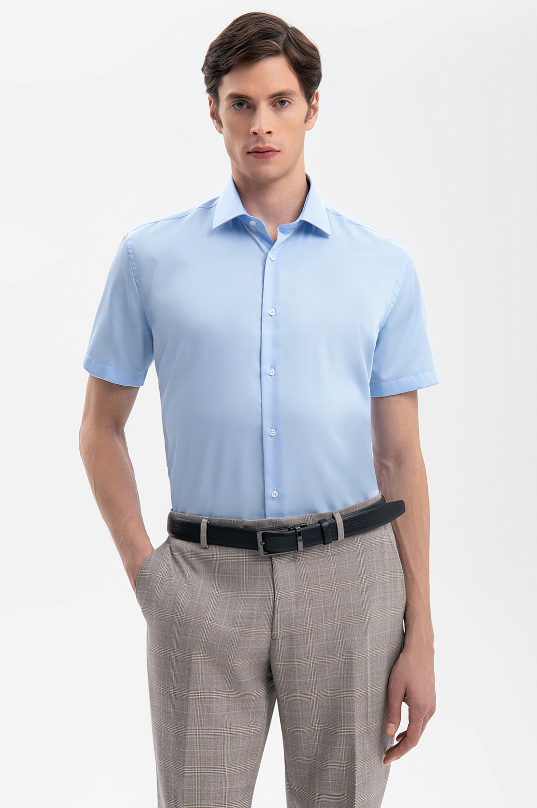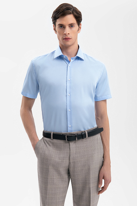 Сорочка с коротким рукавом из хлопка, устойчивая к сминанию, цвет голубой, цена 6 990 руб., код 269349 - купить в Екатеринбурге в интернет-магазине KANZLER