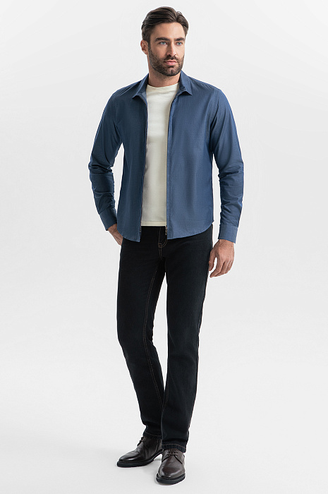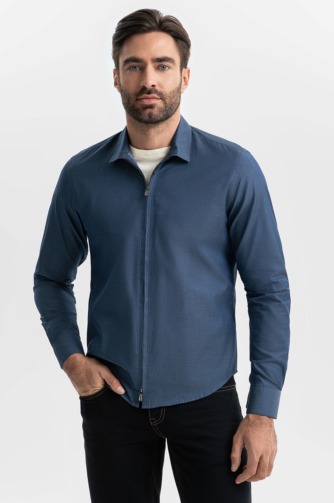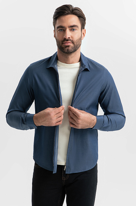Сорочка из хлопка на молнии, цвет синий, цена 4 990 руб., код 268624 - купить в Екатеринбурге в интернет-магазине KANZLER