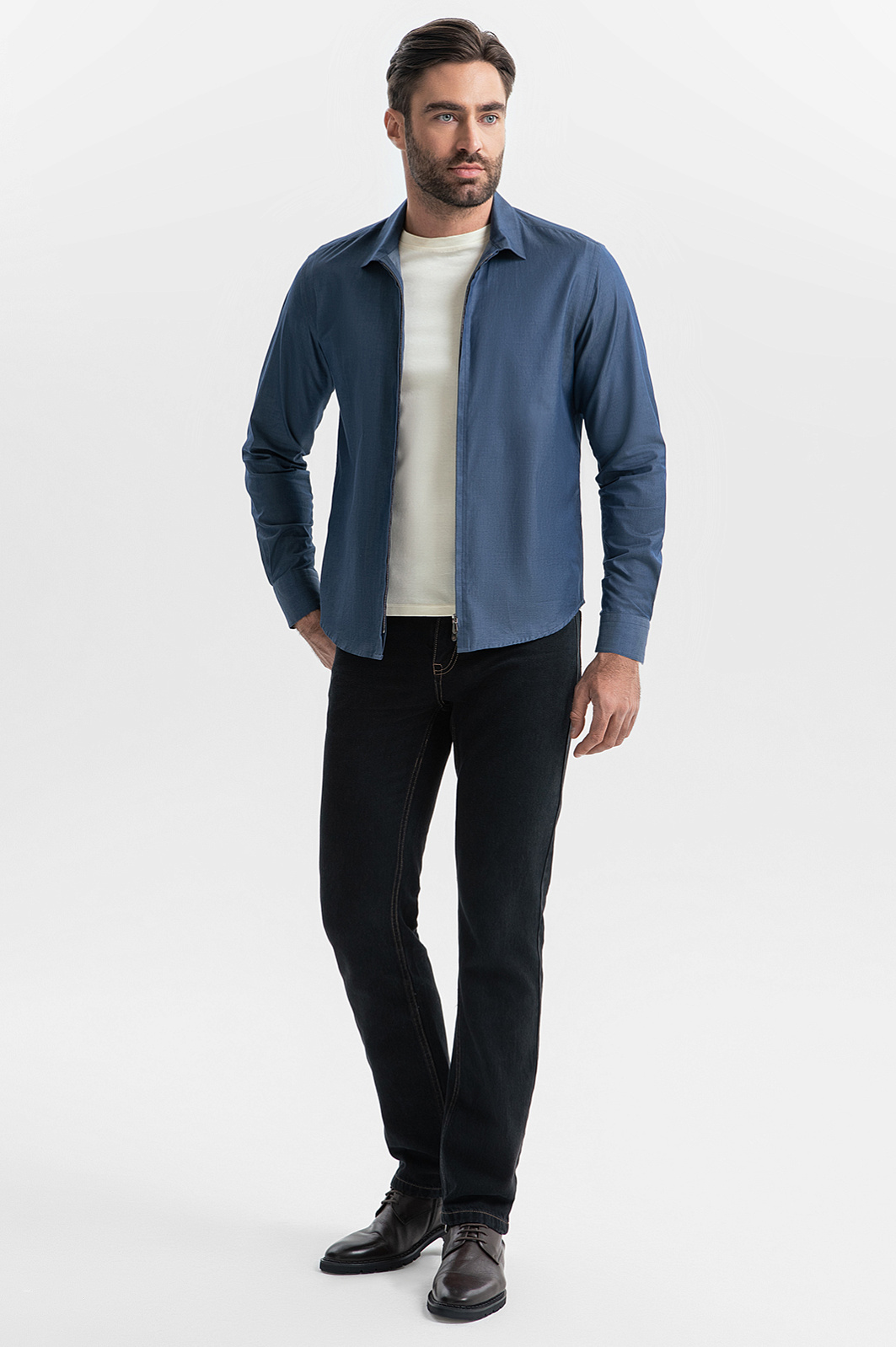 Рубашка KANZLER в оттенке грозового неба – стильный акцент любого гардероба. Темно-синий цвет создает гармоничный и продуманный образ, подходящий для самых разных ситуаций. Классический силуэт обеспечивает классическую посадку, которая выглядит современно и при этом не сковывает движения. 100% натуральный хлопок обеспечивает воздухопроницаемость ткани, сохраняет свежесть и удобство в течение всего дня. Материал приятен на ощупь, хорошо держит форму и устойчив к износу, что делает рубашку долговечным вложением в стильный гардероб. Особое внимание привлекает трендовый элемент - застежка на молнии, которая придаёт изделию непринужденный кежуал стиль. Изделие легко сочетать как с классическими брюками, так и с брюками и джинсами. Параметры модели: рост 192, 108-83-102 Размер на модели: 40