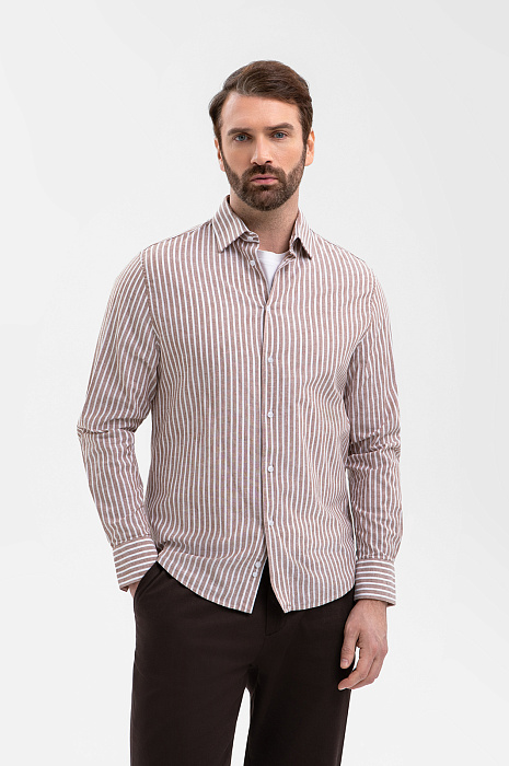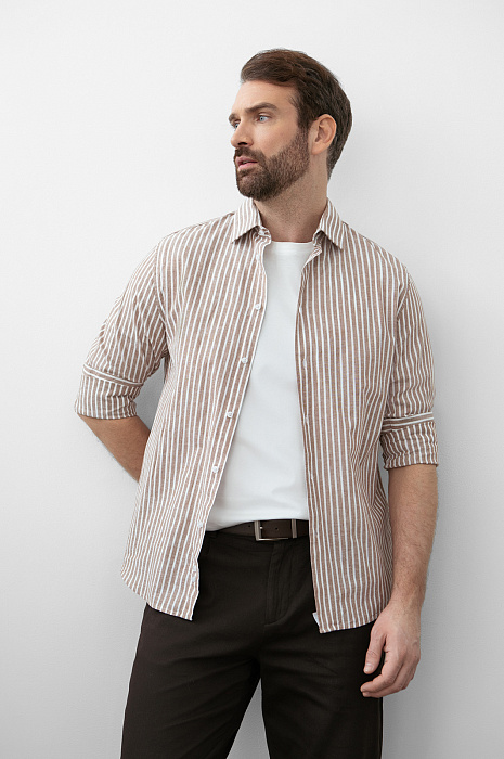Сорочка из хлопка и льна, цвет коричневый, цена 8 990 руб., код 270877 - купить в Екатеринбурге в интернет-магазине KANZLER