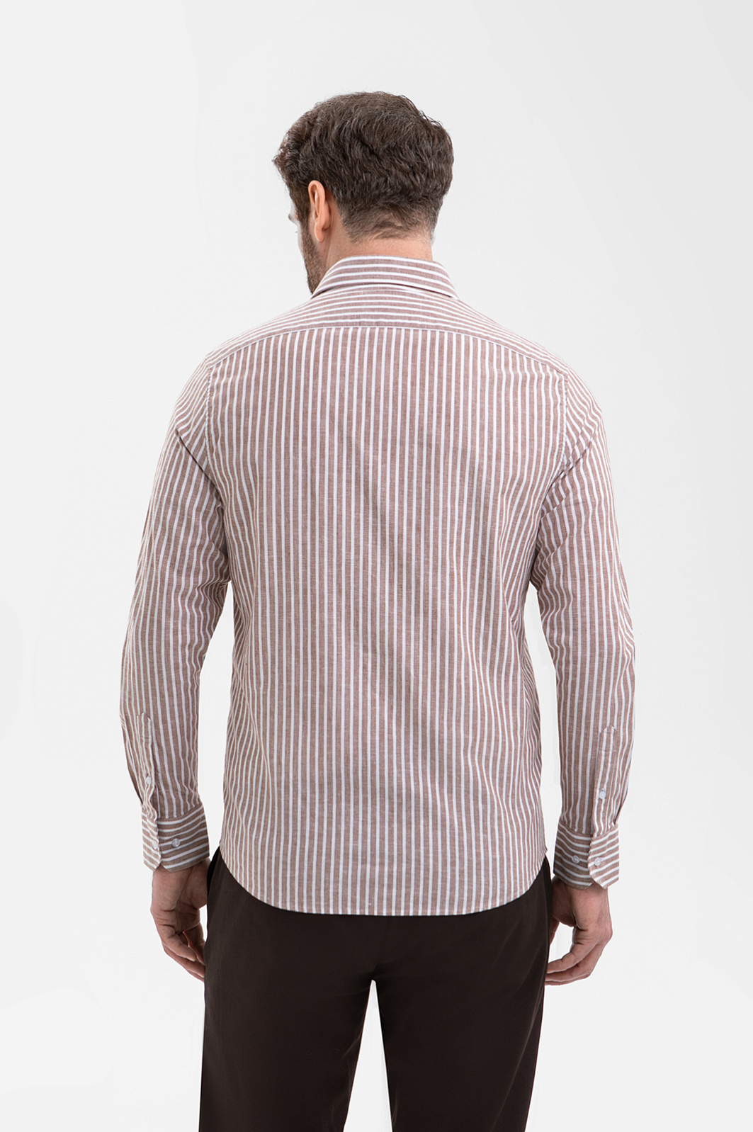 Сорочка KANZLER коричневого оттенка из хлопка и льна — пример современной мужской классики, в котором комфорт и эстетика существуют на равных. Коричневый оттенок выглядит тепло и стильно. Вертикальная белая полоса визуально вытягивает силуэт и добавляет образу графичности. Прямой крой задаёт спокойный уверенный силуэт, не перегружая образ. Роскошная ткань сделана из гипоаллергенных материалов: 70% хлопка и 30% льна. Хлопок отвечает за комфорт и свежесть, а лён придаёт материалу лёгкую фактурность. Натуральная ткань хорошо держит форму и со временем лучше адаптируется к фигуре, приобретая расслабленный и естественный вид.