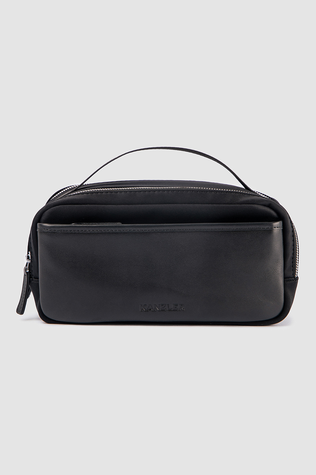 Черный несессер KANZLER из натуральной кожи и текстиля с тисненым логотипом — практичный и стильный аксессуар для хранения необходимых мелочей в поездках и повседневной жизни. Он верно служит своему владельцу, создавая уют и поддерживая порядок. Внутри — функциональное пространство с отделениями для гигиенических принадлежностей, косметики, бритвенных аксессуаров и зарядных устройств. Прочный износоустойчивый текстиль рассчитан на годы. Детали из мягкой гладкой кожи подчеркивают премиальный характер модели.