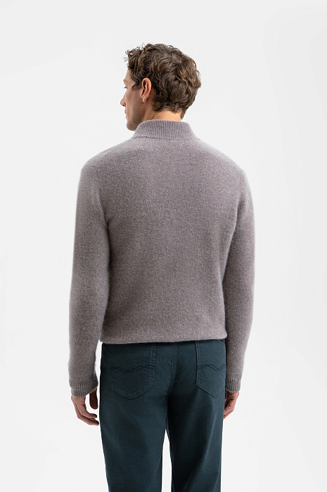 Стильный свитер KANZLER с высоким горлом на молнии из чистого кашемира в тёплом серо-коричневом оттенке — не просто одежда. Это роскошная вещь из лимитированной коллекции, которая придаёт уверенности и помогает обрести дзен в ежедневной рутине. Высокий воротник на молнии создаёт строгий лаконичный силуэт, а в расстёгнутом виде придаёт расслабленной небрежности. Трикотажные резинки мягко поддерживают края, обеспечивая аккуратную посадку. Гладкая вязка служит фоном, который раскрывает красоту и благородство дорогого натурального материала. Кашемир — секрет непревзойдённого комфорта, который хочется всегда носить при себе. Его невесомые волокна нежно обнимают тело, сохраняя естественное тепло. Параметры модели: рост 188, 97-82-92 Размер на модели: M