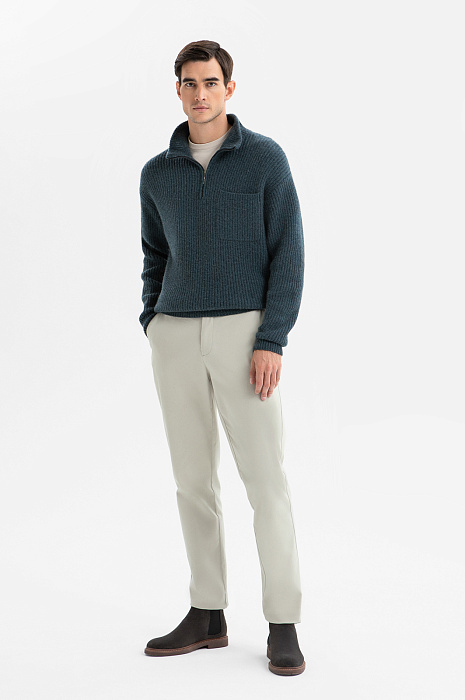 Джемпер KANZLER из благородного кашемира (100%) из лимитированной коллекции — это история о сдержанной роскоши, которая не требует громких заявлений. Крупный рубчик и глубокий изумрудный оттенок придают мягкому и комфортному джемперу фактурность и выразительность. Высокий воротник на молнии может быть строгим, когда полностью застёгнут, или расслабленным, если оставить его приоткрытым. Нагрудный карман — продуманная деталь, которая не бросается в глаза, но делает вещь более сложной. Джемпер выполнен из дорогого восхитительного кашемира, который согревает и тело, и душу. Легкое вязаное полотно изящно драпируется и роскошно выглядит. Параметры модели: рост 192, 101-76-97 Размер на модели: M