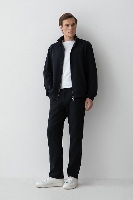 Тёмно-синяя толстовка KANZLER позволяет выглядеть на отдыхе стильно и элегантно. Для создания спортивного костюма её можно дополнить брюками KANZLER из такой же ткани. Мягкий, приятный на ощупь трикотаж дополнен на рукавах вставками из полиэстера, которые придают вещи структурированность и подчёркивают чистые линии кроя. Вышитый логотип на груди служит деликатным акцентом. Удобная молния с двумя бегунками позволяет открывать застёжку с любой стороны. Толстовка сшита из смесового хлопка. Натуральные гипоаллергенные волокна поддерживают ощущение свежести и сохраняют естественное тепло. Добавление полиэстера и эластана придаёт материалу прочность и пластичность.