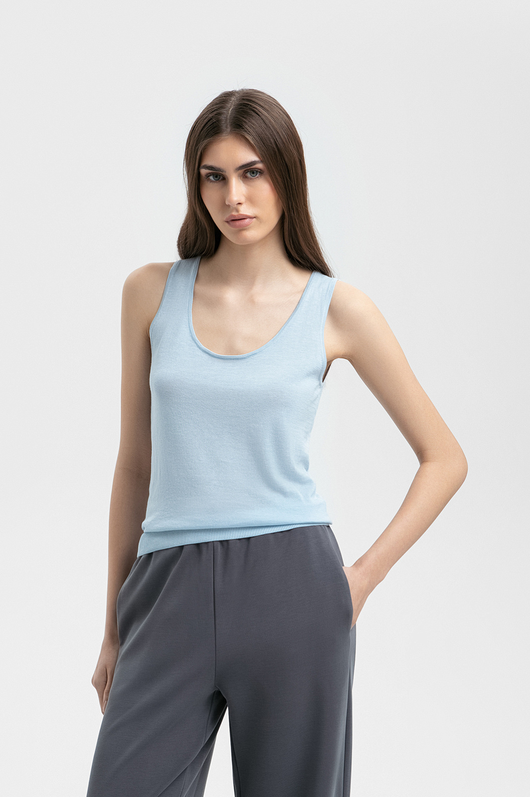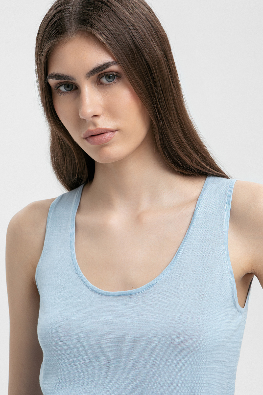 Топ из хлопка, шелка и льна, цвет голубой светлый, цена 4 990 руб. - купить в интернет-магазине KANZLER