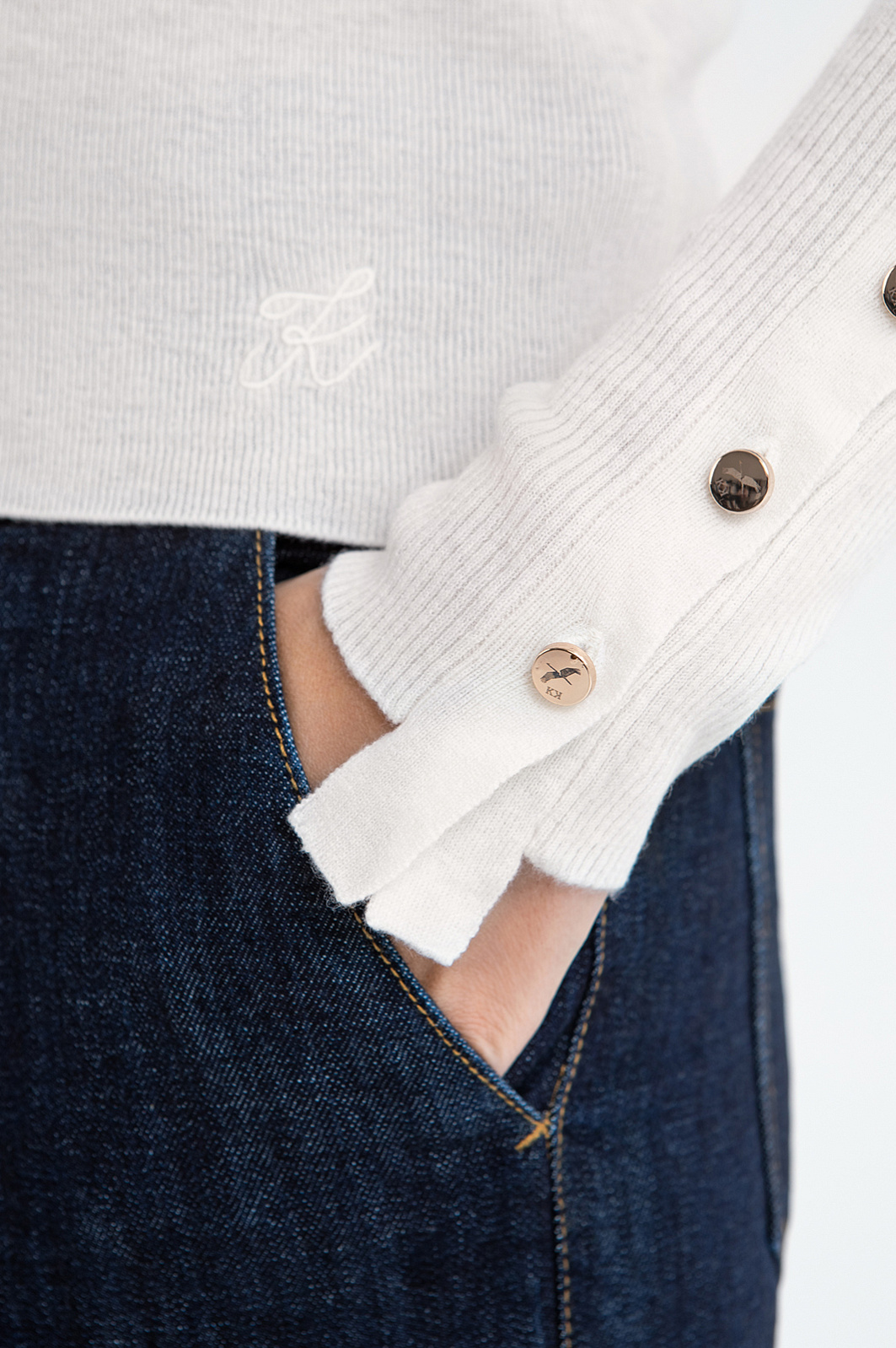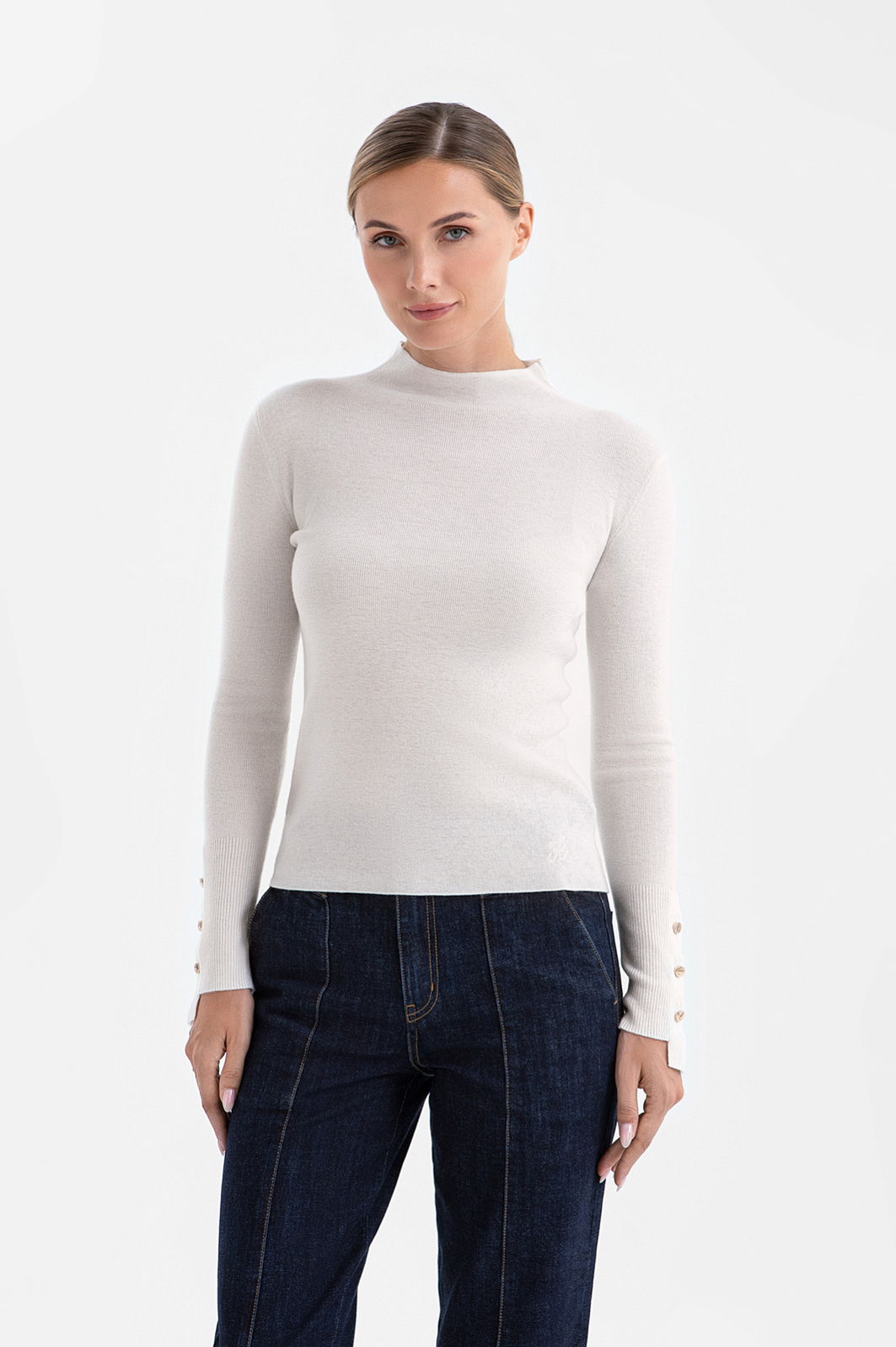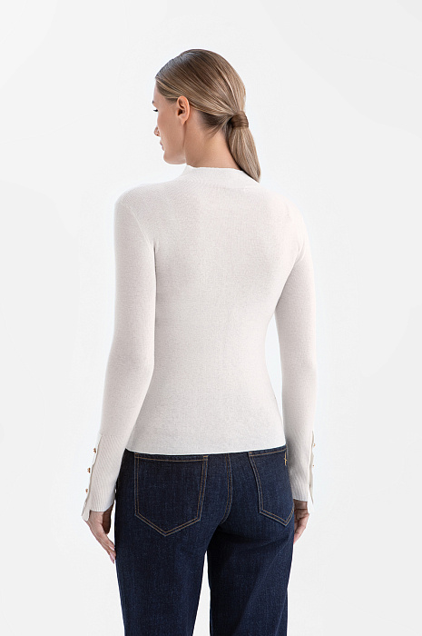 Водолазка KANZLER из чистой шерсти в светло-бежевом оттенке — воплощение элегантной простоты и женственности. Его мягкий природный цвет и детали подчёркивают утончённость и романтичность образа. Невысокий воротник защищает от прохлады, но не утяжеляет силуэт. Особое очарование создают манжеты с удлинёнными планками, выходящими за край рукава, и нарядные золотистые пуговицы с фирменным изображением журавля. Эластичный трикотаж в мелкий рубчик из шерсти (100%) поддерживает оптимальную для тела температуру. Натуральные волокна обладают мягкостью и упругостью, благодаря чему изделие комфортно в носке. Кроме того, шерстяной трикотаж отличается долговечностью, сохраняя свой благородный вид на долгие годы.