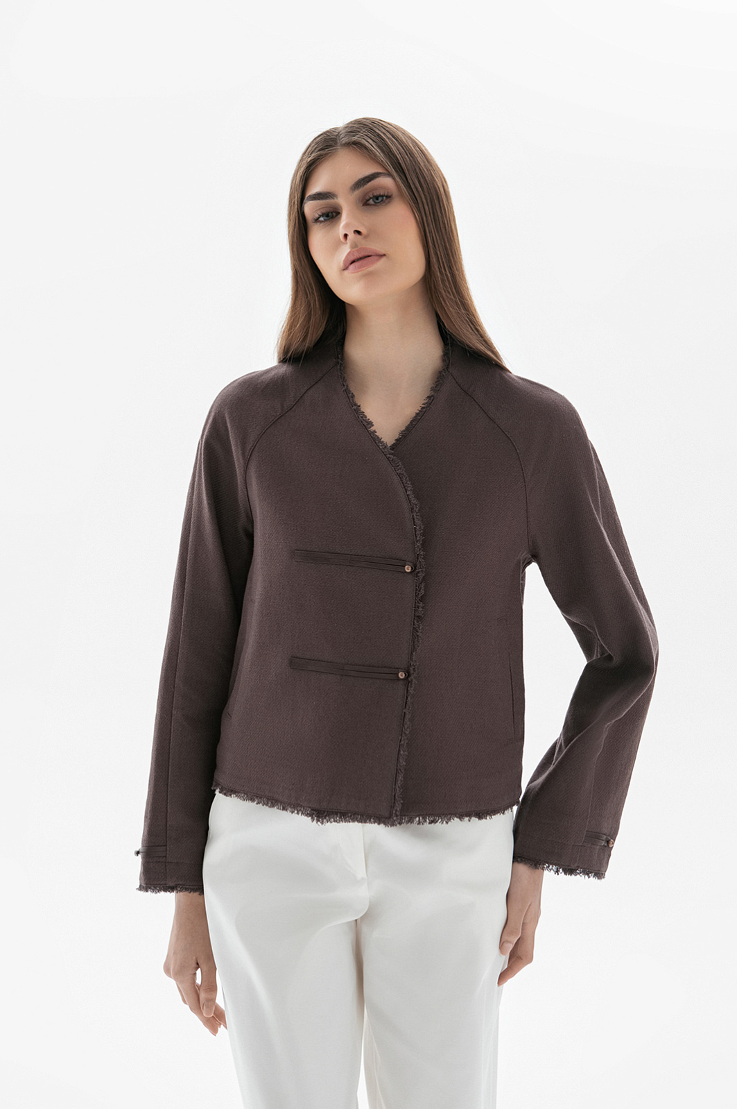 Жакет из хлопка и льна, цвет коричневый, цена 14 990 руб. - купить в интернет-магазине KANZLER